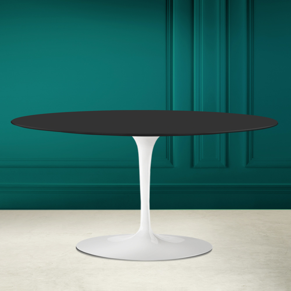 طاولة قهوة ذات سطح بيضاوي من السيراميك الأسود الناعم وقاعدة من الألومنيوم المصقول، صنع في إيطاليا