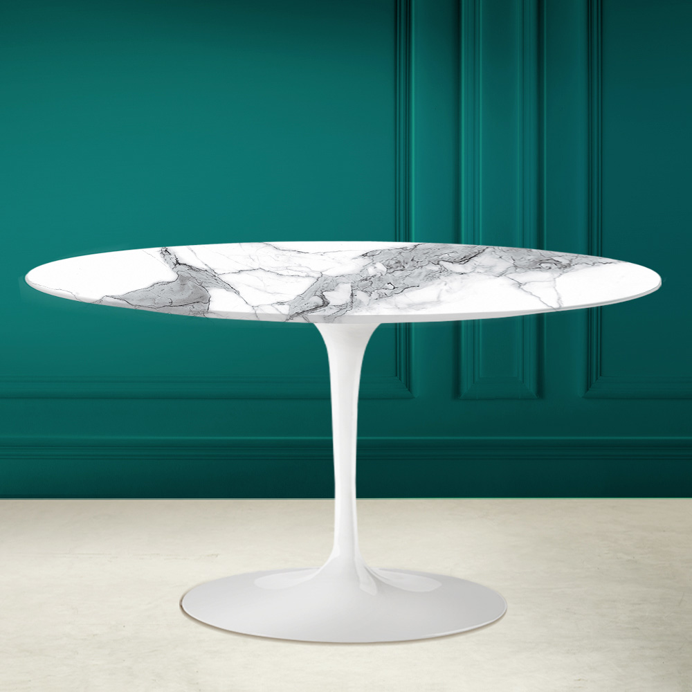 طاولة قهوة بسطح بيضاوي من سيراميك ستاتواريو عالي الجودة، بتأثير رخام ستاتواريو غير لامع ، وقاعدة من الألومنيوم المصقول، مصنوعة بالكامل في إيطاليا . يتميز هذا العنصر بخاصيتين فريدتين: سيراميك التمثال العالي والشكل البيضاوي. يتميز السيراميك برسومات دقيقة ومعقدة ، مما يضفي جوًا دافئًا ومرحّبًا على أي بيئة معيشية، دون إغفال جودة المادة ومتانتها . يُستخدم الشكل البيضاوي المميز بشكل متزايد لإضفاء لمسة مميزة على الغرف بفضل خط إنتاجه وعمليته ووظائفه المتعددة.