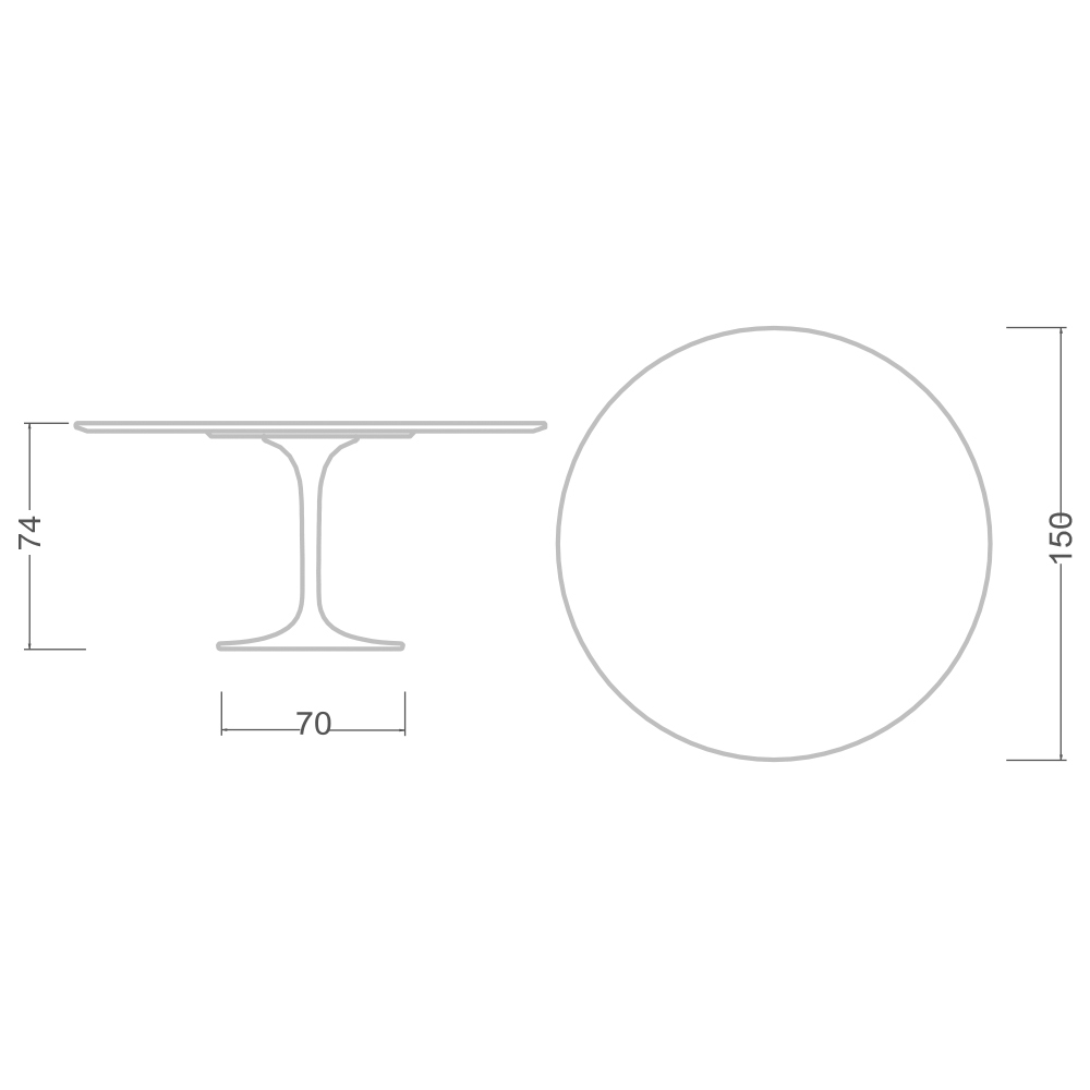 قطر سطح الطاولة 150 × ارتفاع 73 سم / قطر القاعدة 70 سم