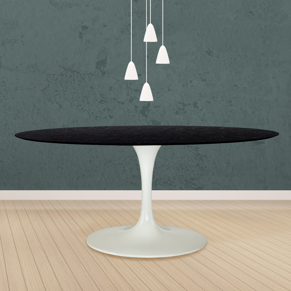 طاولة طعام بيضاوية من خشب البلوط الأسود المصبوغ وقاعدة من الألومنيوم المصقول، صنع في إيطاليا
