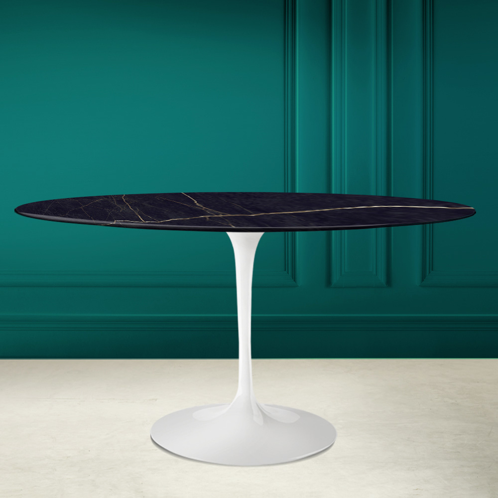 طاولة طعاممصنوعة بالكامل في إيطاليا ، بسطح بيضاوي من سيراميك نوار لوران، بتأثير رخامي نوار لوران مطفي ، وقاعدة من الألومنيوم المصقول. تُعد هذه الطاولة العنصر الأمثل لإضفاء لمسة أصلية على أي غرفة معيشة ومطبخ بفضل شكلها البيضاوي وسيراميك نوار لوران. يُستخدم الشكل البيضاوي بشكل متزايد في طاولات الطعام، إذ يوفر عملية ووظائف رائعة، ويضفي لمسة مبتكرة بفضل خط إنتاجها الجديد والمتطور. يتميز سيراميك نوار لوران بخطوطه الحيوية والمعقدة ، التي تتكيف بشكل مثالي مع أسلوب أي غرفة، من الحديث إلى المعاصر.