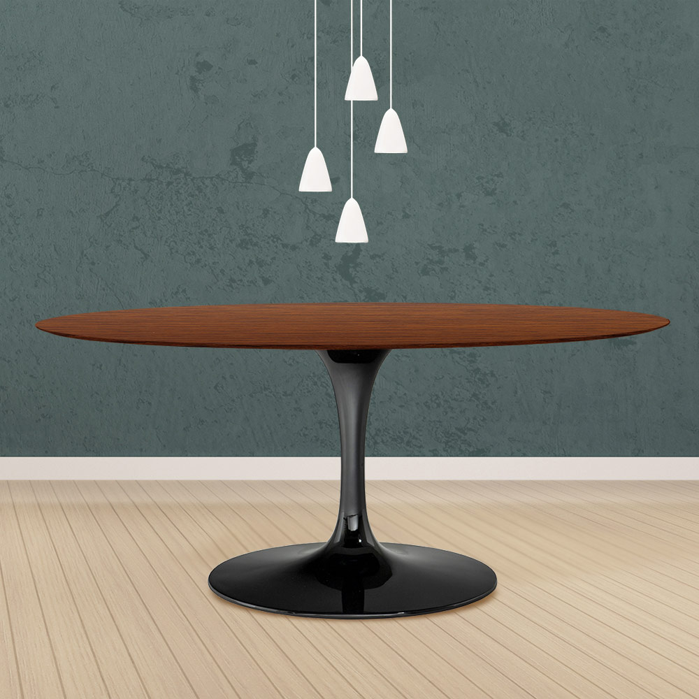 طاولة طعام بيضاوية من خشب البلوط المصبوغ بلون الجوز الداكن وقاعدة من الألومنيوم المصقول، صنع في إيطاليا