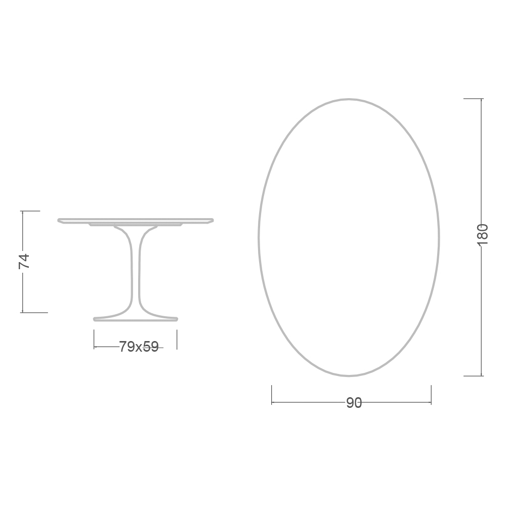 سطح الطاولة: 180 × 105 / قاعدة بيضاوية: 79 × 59 سم × ارتفاع 73 سم