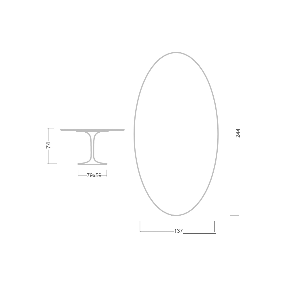 سطح الطاولة: 244 × 137 / قاعدة بيضاوية: 79 × 59 سم × ارتفاع 73 سم