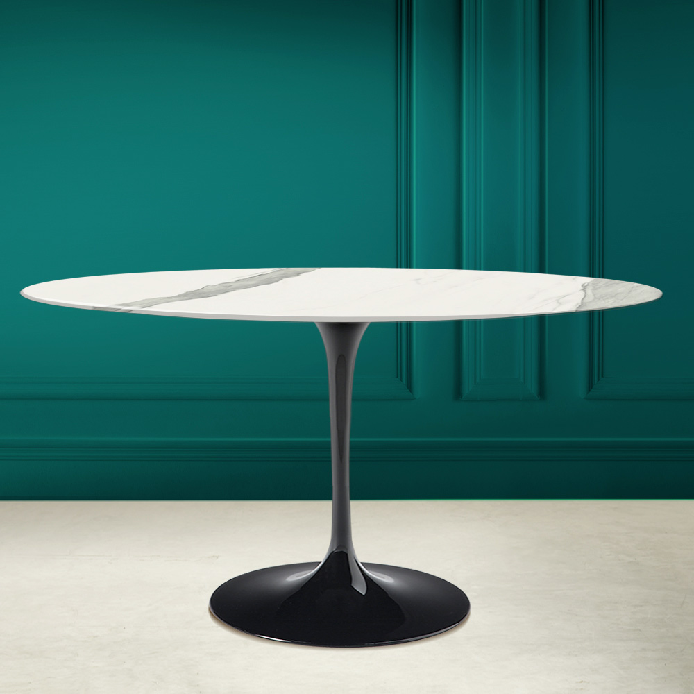 سطح الطاولة: 169 × 111 / قاعدة بيضاوية: 79 × 59 سم × ارتفاع 73 سم