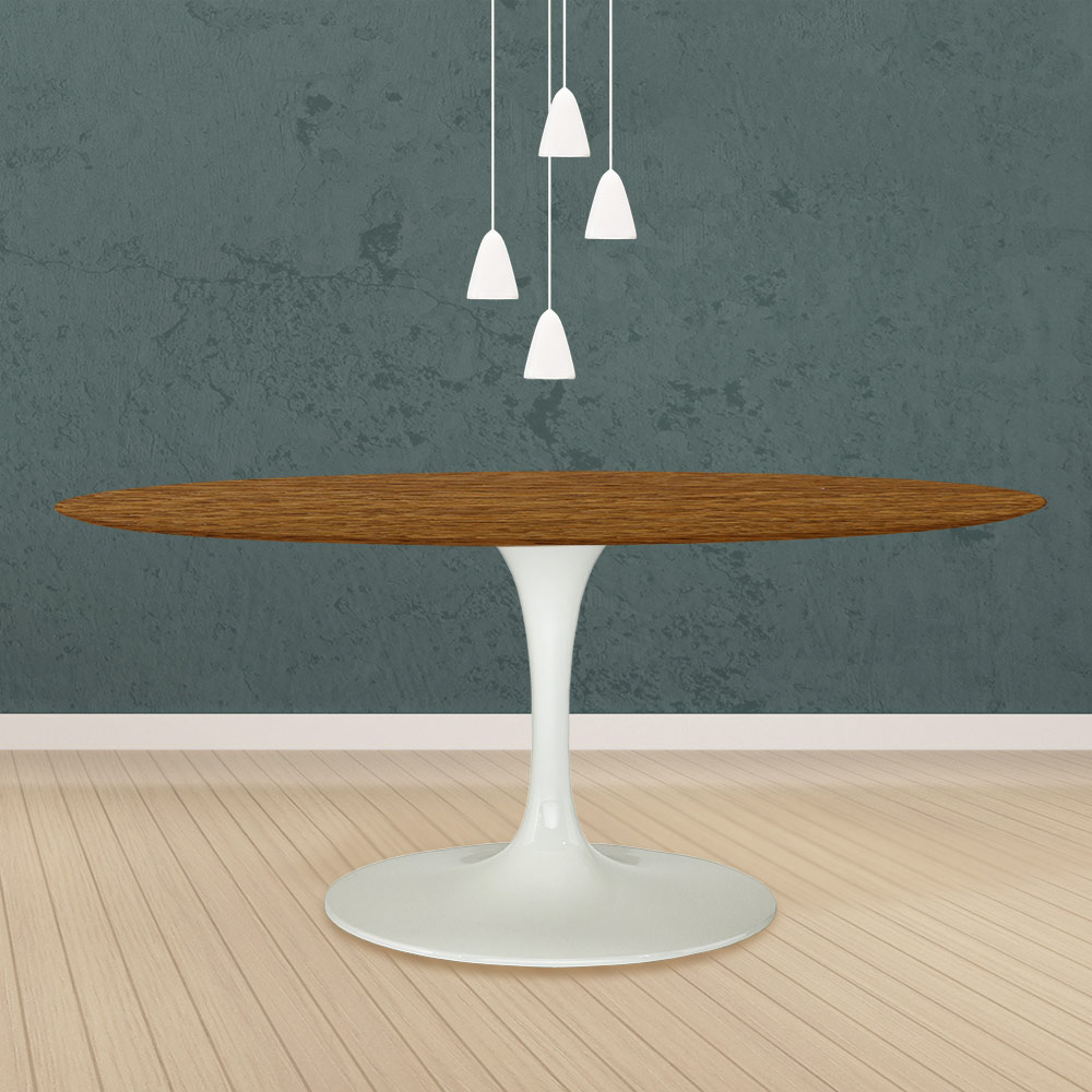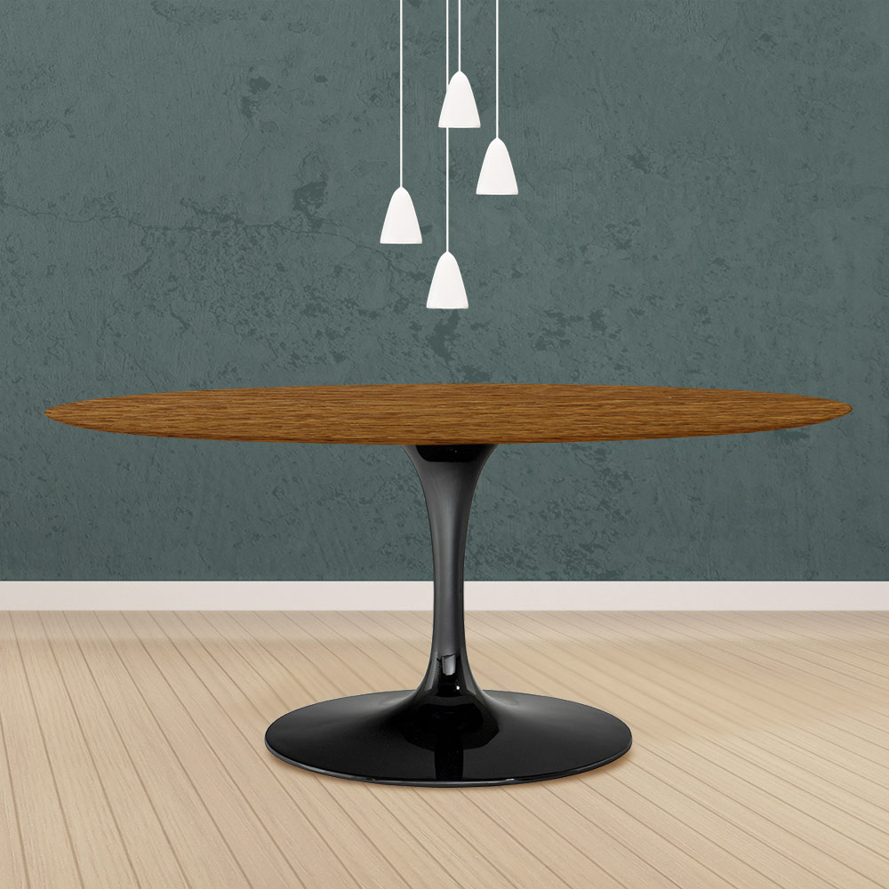 طاولة طعام بيضاوية من خشب البلوط المصبوغ بلون الجوز الفاتح وقاعدة من الألومنيوم المصقول، صنع في إيطاليا