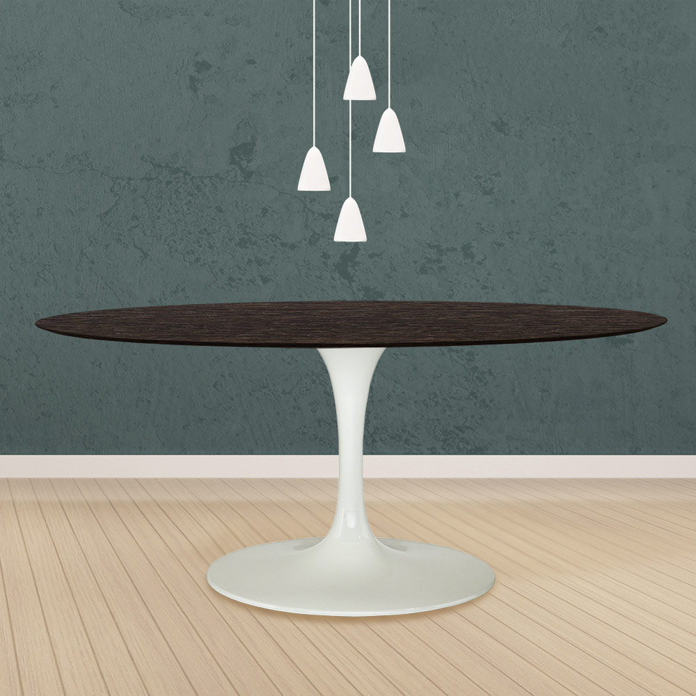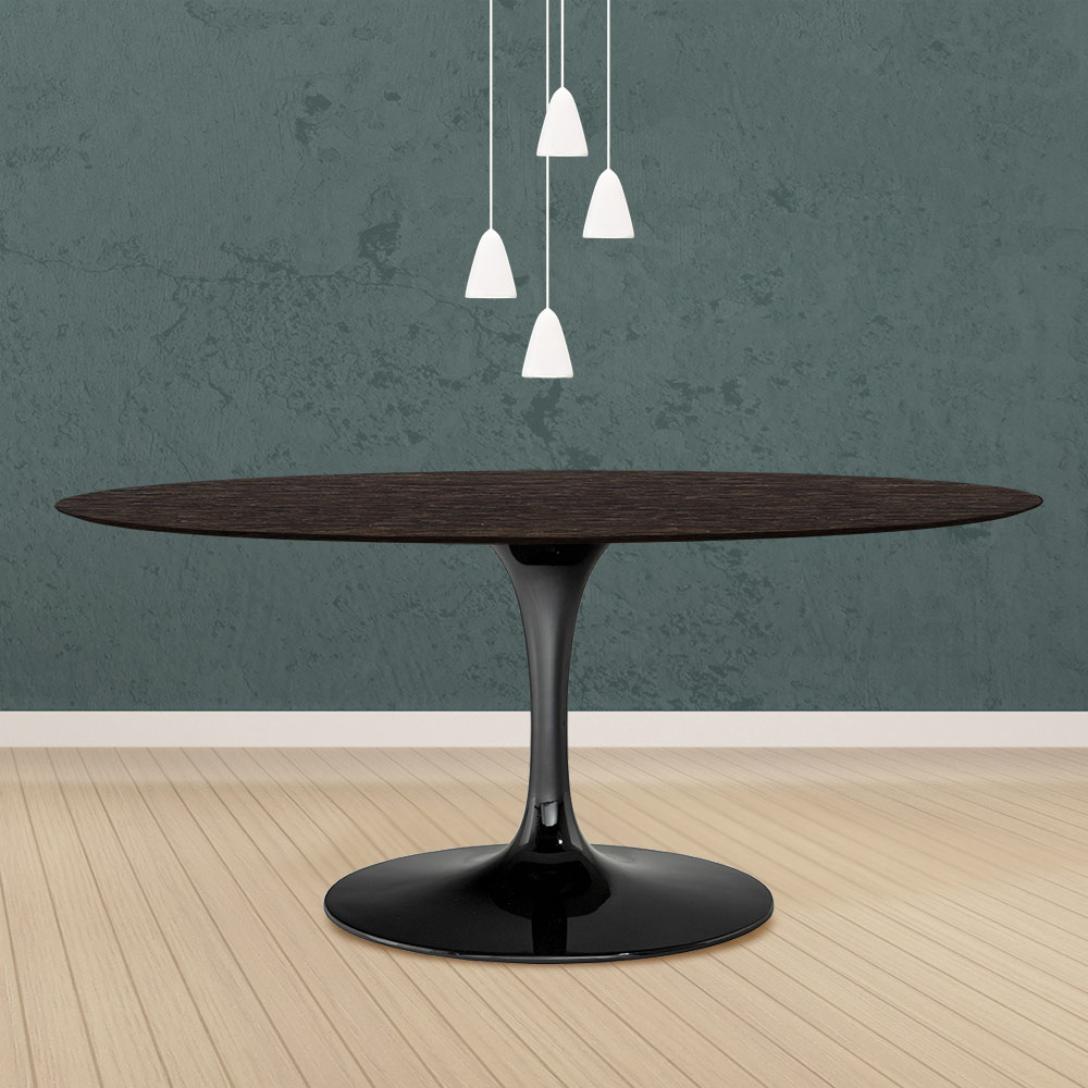 طاولة طعام بيضاوية من خشب البلوط الملون باللون البني الموكا وقاعدة من الألومنيوم المصقول، صنع في إيطاليا