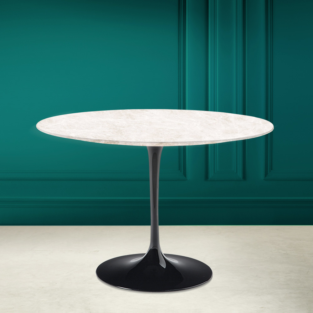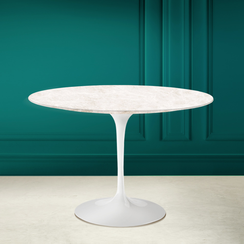 طاولة طعام ذات سطح دائري من السيراميك الكريمي الماسي، صنع في إيطاليا