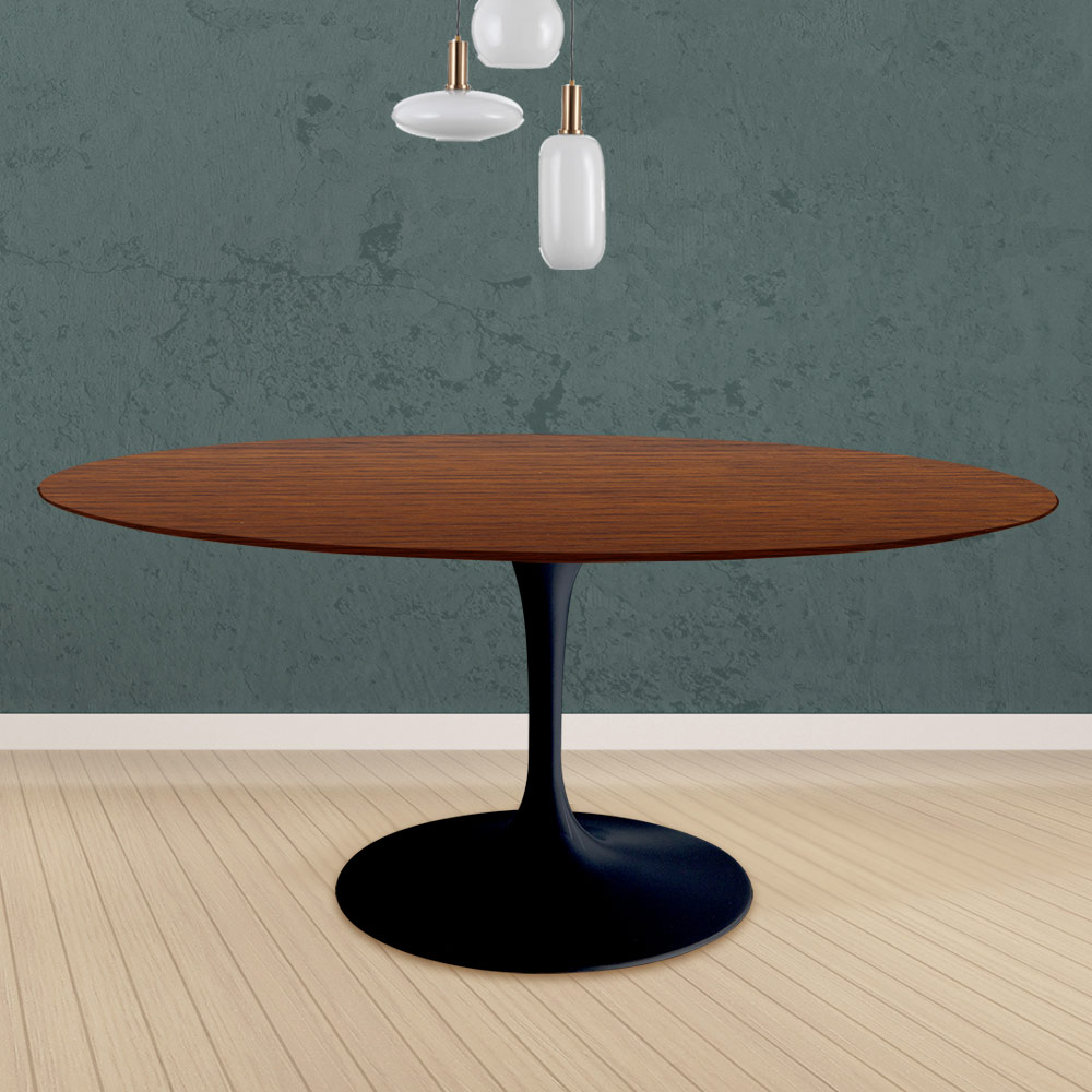 طاولة طعام مستديرة من خشب البلوط المصبوغ بلون الجوز الداكن وقاعدة من الألومنيوم المصقول، صنع في إيطاليا