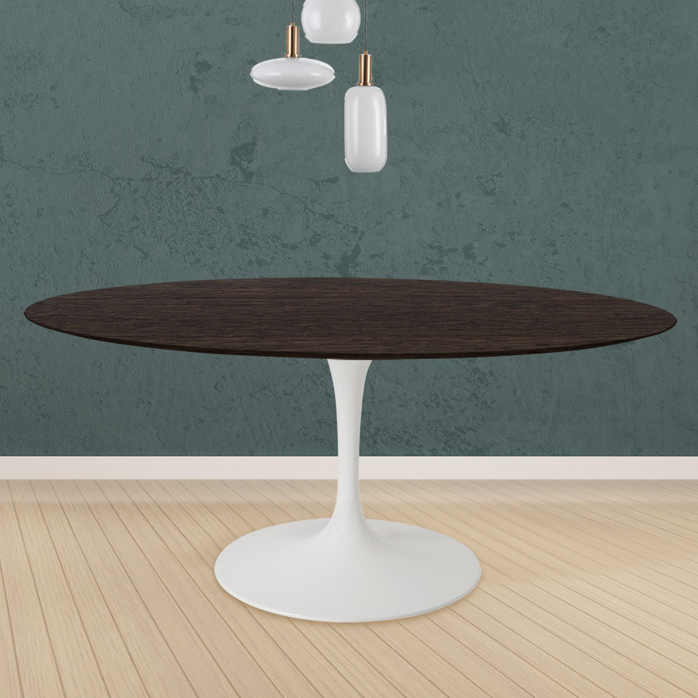 طاولة طعام مستديرة من خشب البلوط الملون باللون البني الموكا وقاعدة من الألومنيوم المصقول، صنع في إيطاليا