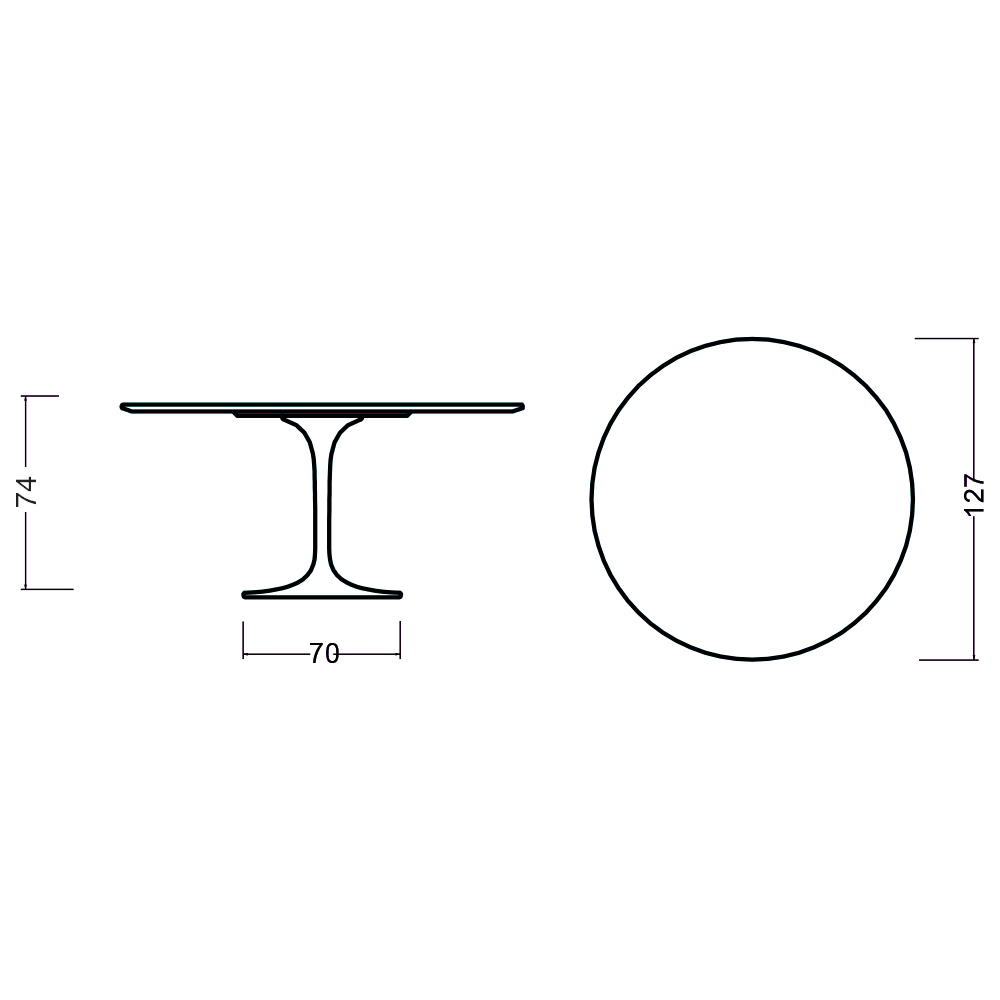 قطر سطح الطاولة 127 × الارتفاع 74 سم / قطر القاعدة 70 سم