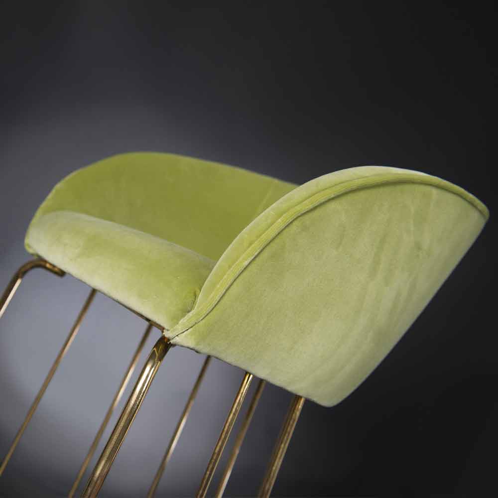 كرسي مخملي مرتفع بإطار معدني مصنوع في إيطاليا، فاخر.