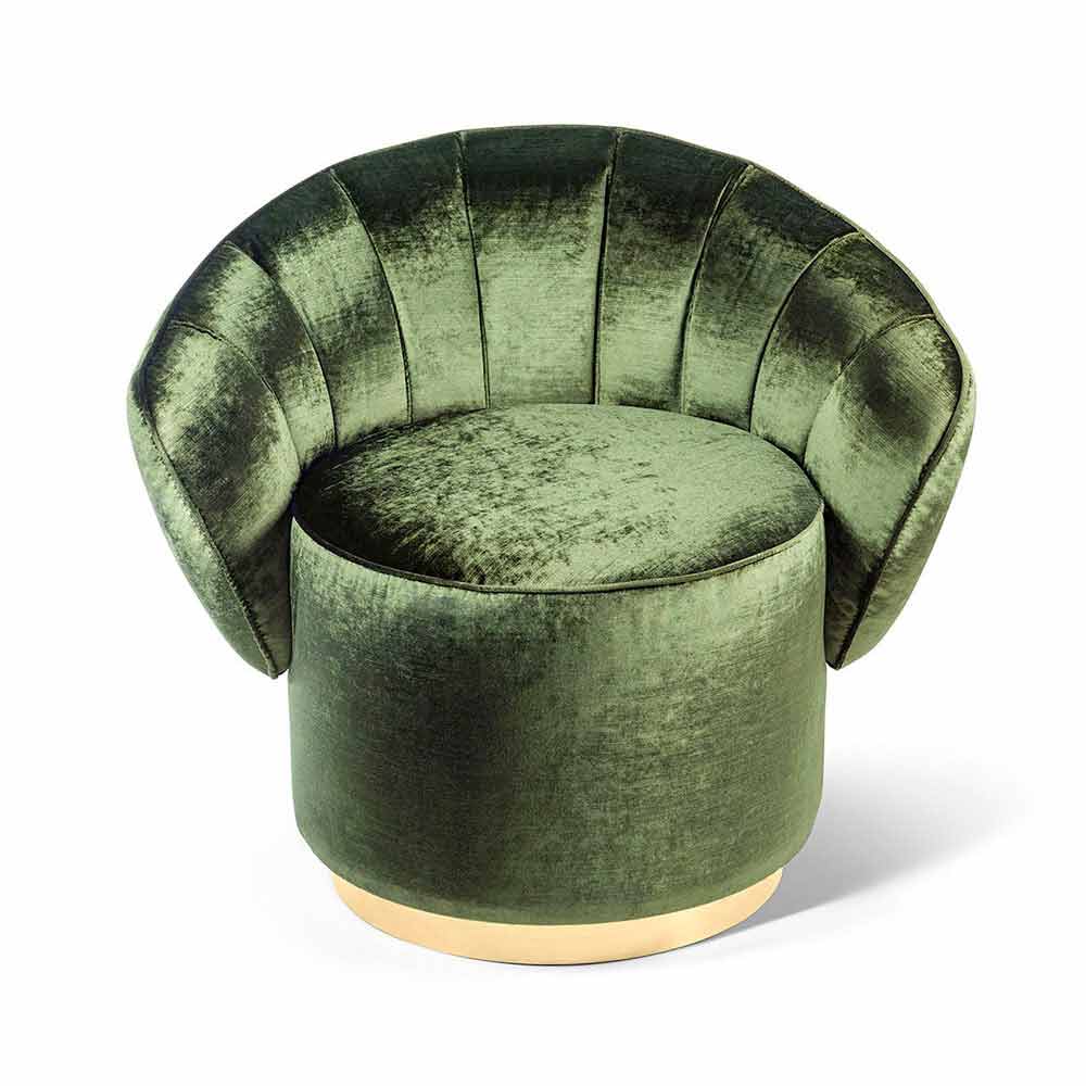 كرسي بيل المصنوع من القماش المنجد، بتصميم عصري. كرسي بتصميم مميز من تصميم جورجيو راجازيني. يتميز بأسلوب ديكو مستوحى من العصر الجميل والروح البوهيمية التي نشأت في فرنسا في نهاية القرن التاسع عشر.