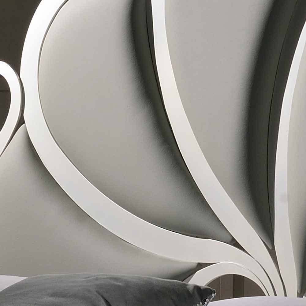 هذا السرير مصنوع يدويًا في إيطاليا على يد حرفيين محترفين، ويتميز بلمسة نهائية لؤلؤية. لوح الرأس مبطن ومغطى بجلد صناعي رمادي اللون، ومزين بزخارف كريستالية.