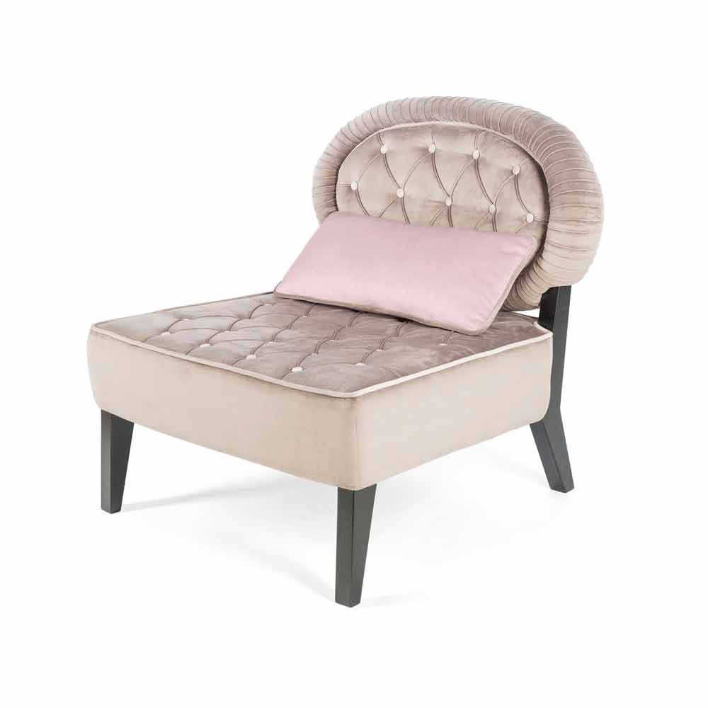 كرسي إليزابيث المخملي، مع تنجيد بأزرار، صنع في إيطاليا. يتميز كرسي إليزابيث العصري بإطار خشبي، ووسائده مصنوعة من رغوة البولي يوريثان المتمددة. تتميز إليزابيث بغطاء مخملي ناعم بلون بني فاتح. الوسائد مزينة بتنجيد بأزرار. مع أرجل خشبية مطلية.