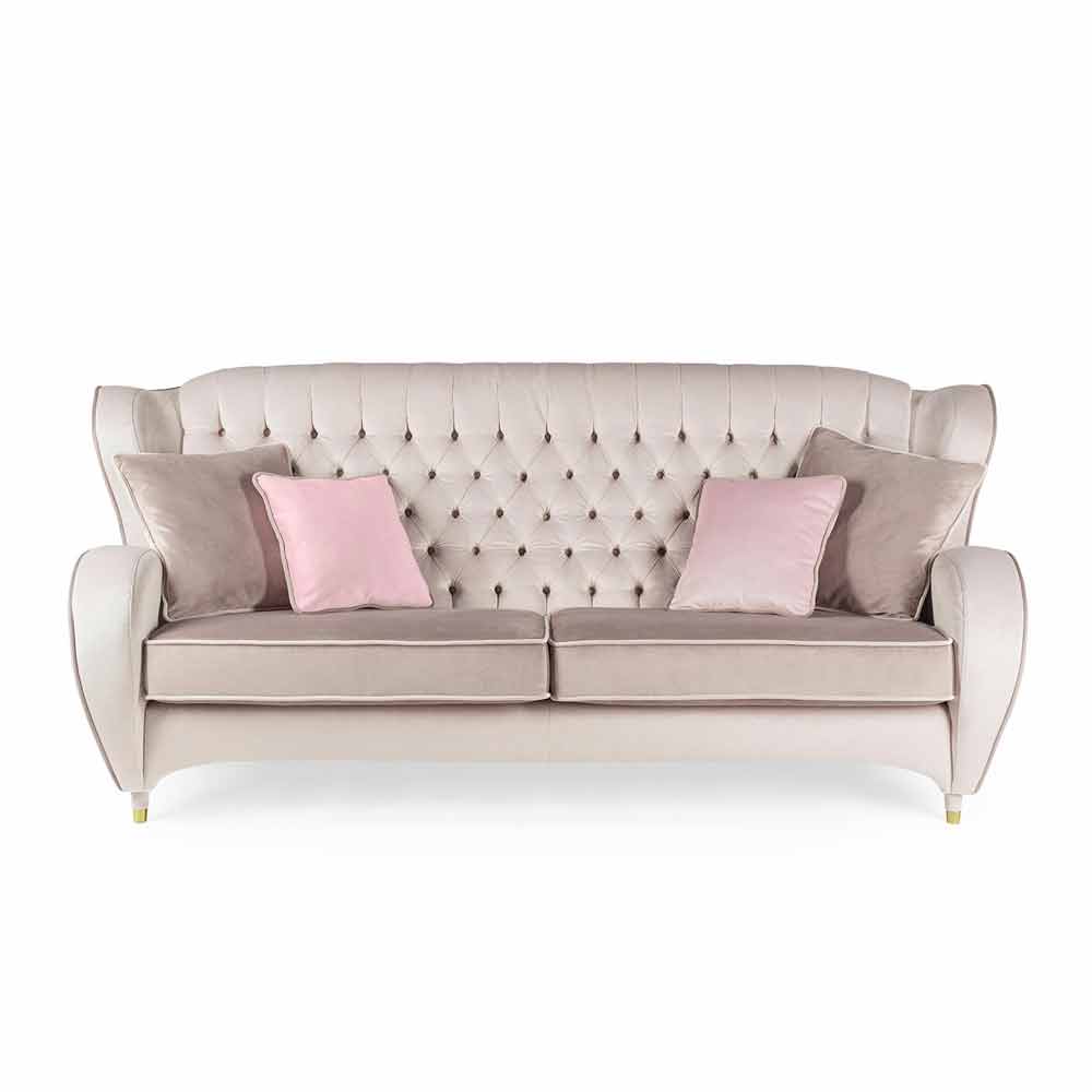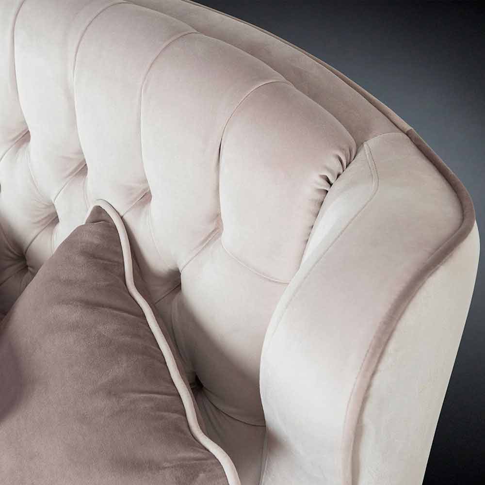 أريكة مخملية شينك، مع تنجيد بأزرار، على طراز نيويورك، صنع في إيطاليا. تتميز أريكة شينكي العصرية بإطار خشبي، ووسائدها مصنوعة من رغوة البولي يوريثان المتمددة. شينكه بغلاف مخملي بدرجات البيج الفاتح والرمادي الداكن وحواف كاناليتو. وسادة ظهر عالية مزينة بتنجيد بأزرار. الأرجل مغطاة بالمخمل ولها طرف من معدن ثمين.