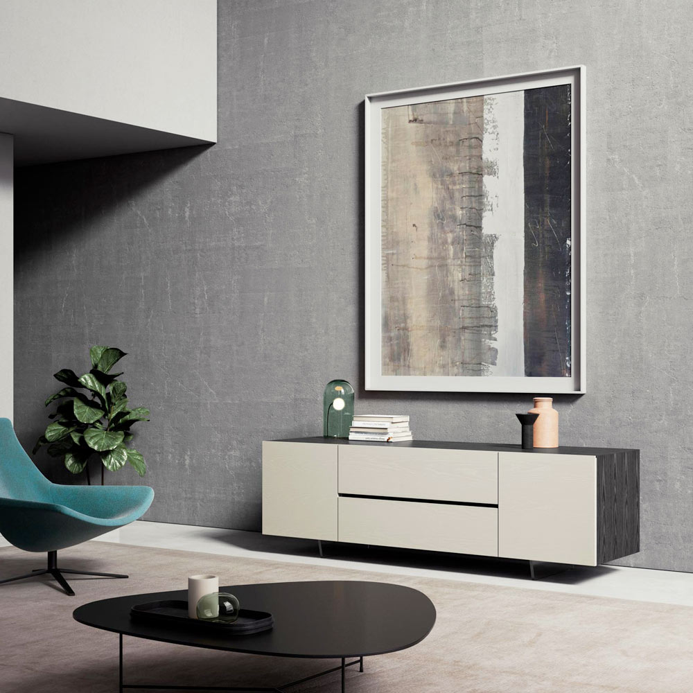 خزانة جانبية ببابين وحجرتين مفتوحتين في المنتصف من الميلامين، صنع في إيطاليا - ميني