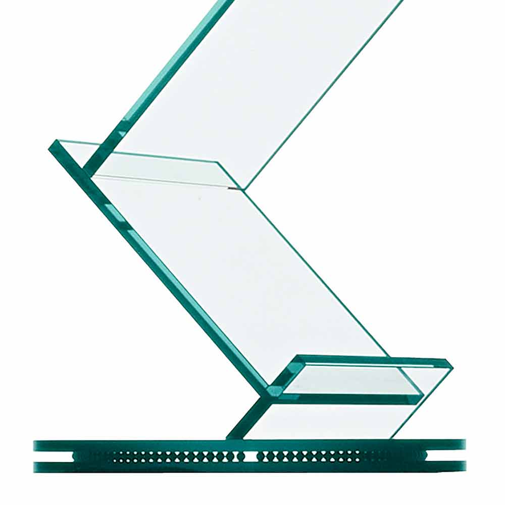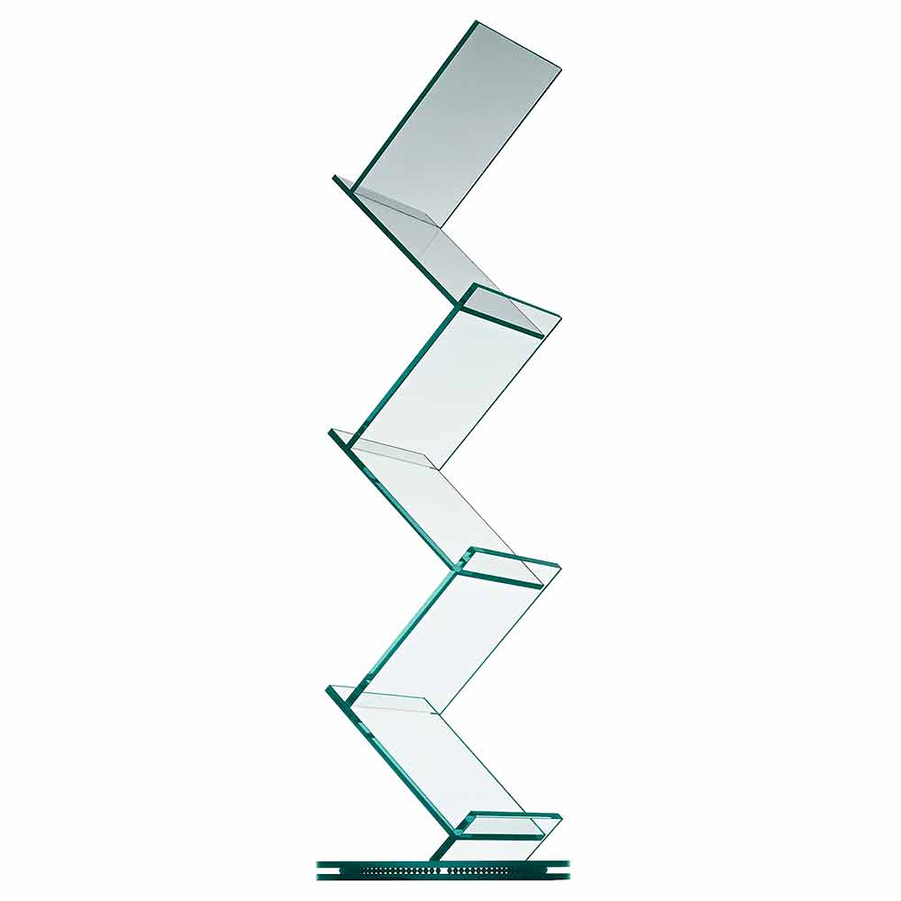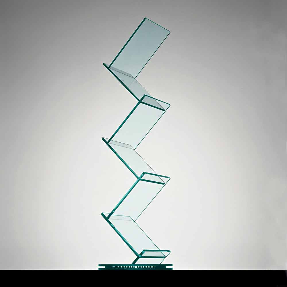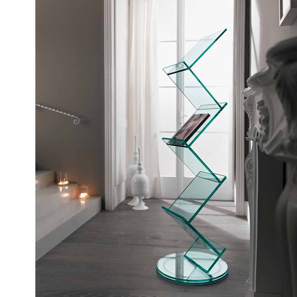 تتميز خزانة الكتب هذه ذات الرفوف المجلات بتصميمها الحازم والأنيق المصنوع بالكامل من الزجاج الشفاف.
