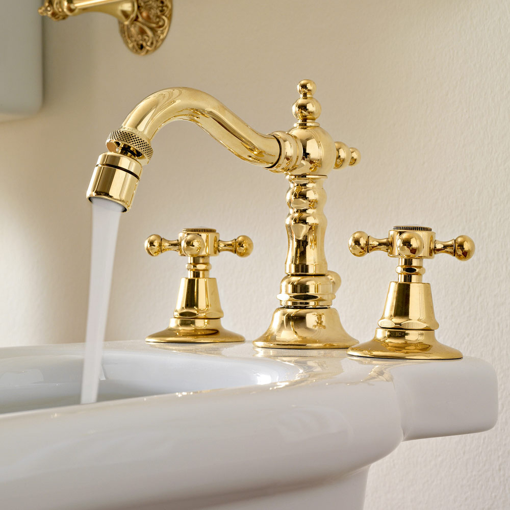 صنبور بيديه بثلاث فتحات بتصميم عتيق مصنوع في إيطاليا من النحاس.