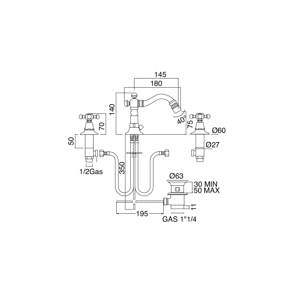 . Ursula è a luxury and elegant bidet tap 3-holeمع تدفق. تم تصنيعها يدويًا في إيطاليا باستخدام مواد ذات جودة عالية: النحاس. . متوفر بتشطيبات متعددة: