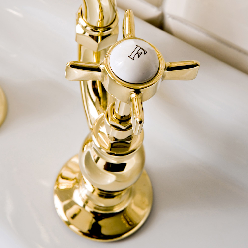 مجموعة جسر على الطراز القديم لحوض الغسيل، نحاس، كاترينا، صنع في إيطاليا.