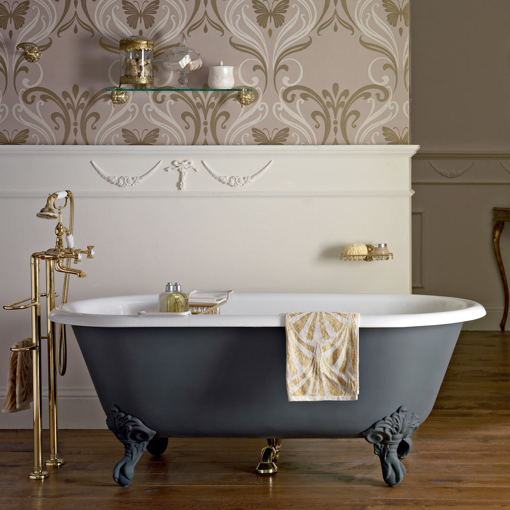 حوض استحمام قائم بذاته عتيق مع أقدام مصنوع من الحديد الزهر موديل Naima، صنع في إيطاليا.