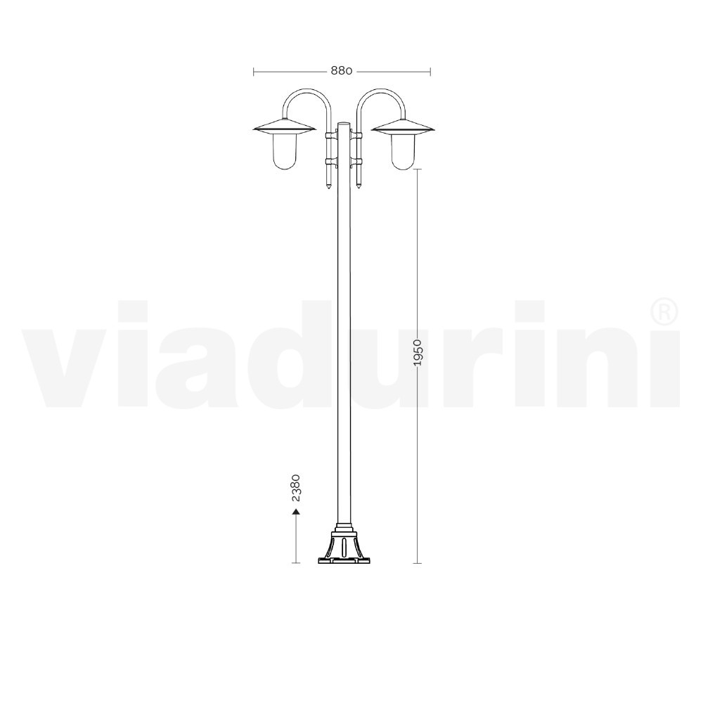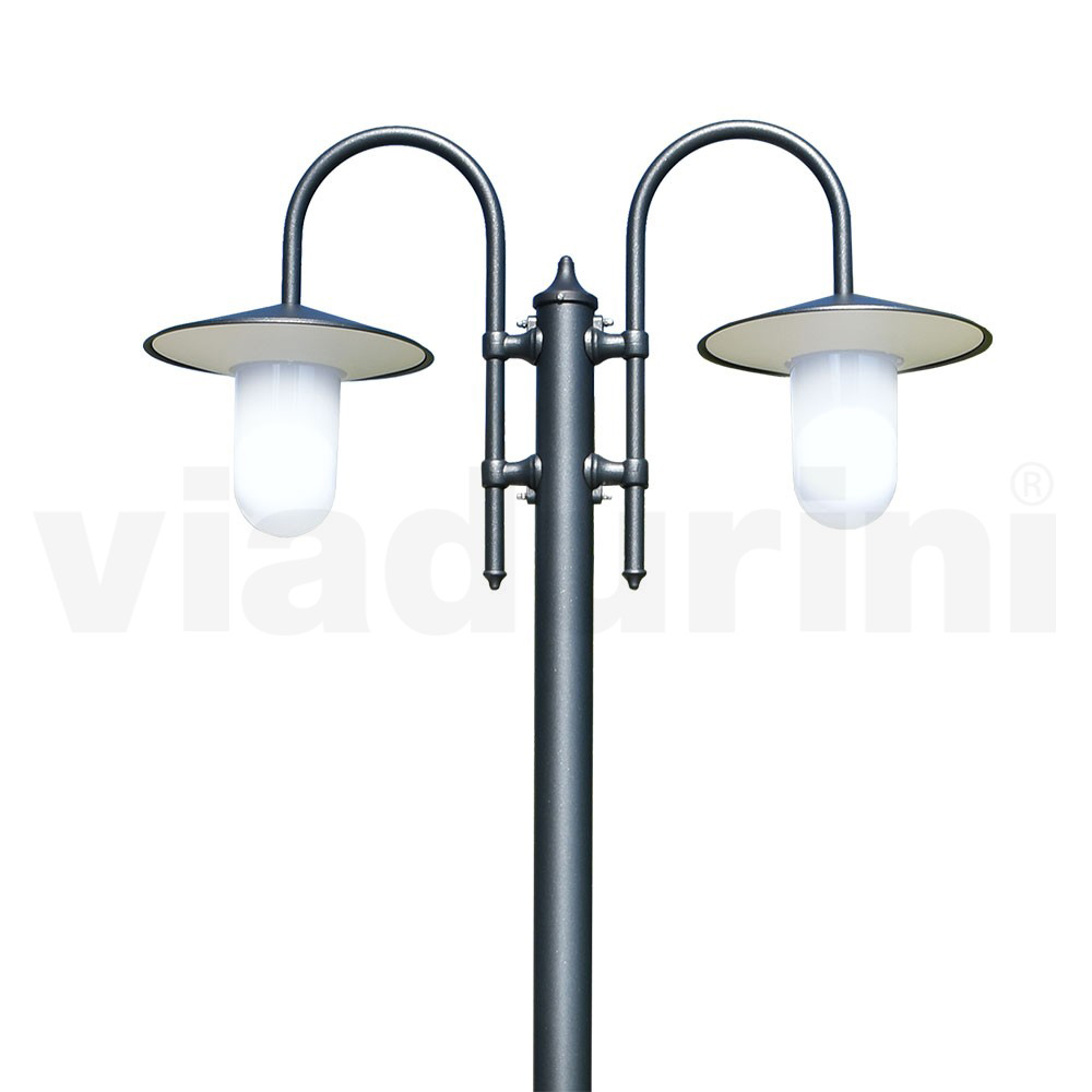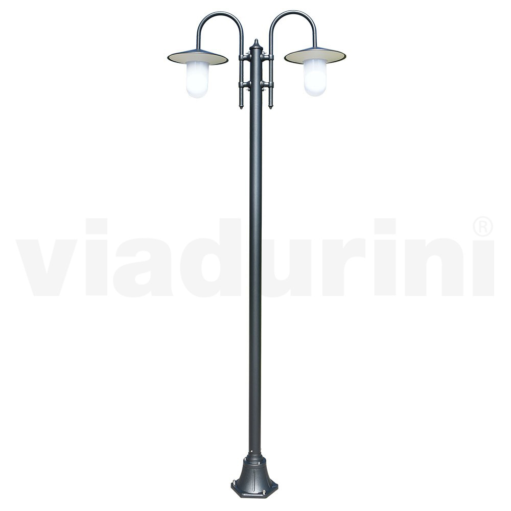 مصباح حديقة على الطراز القديم مكون من ضوءين وهيكل من الألومنيوم صنع في إيطاليا.