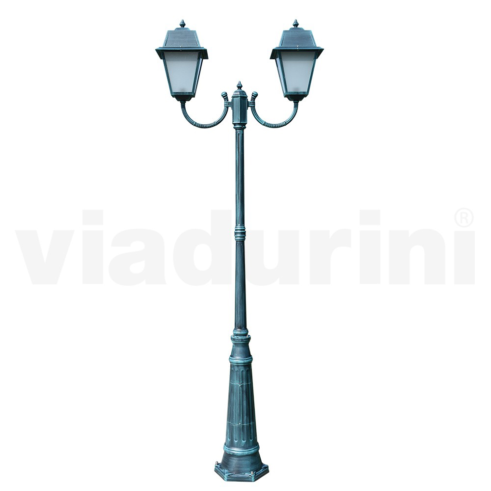 عمود إنارة من الألومنيوم مع موزع زجاجي رملي صنع في إيطاليا، على الطراز العتيق.