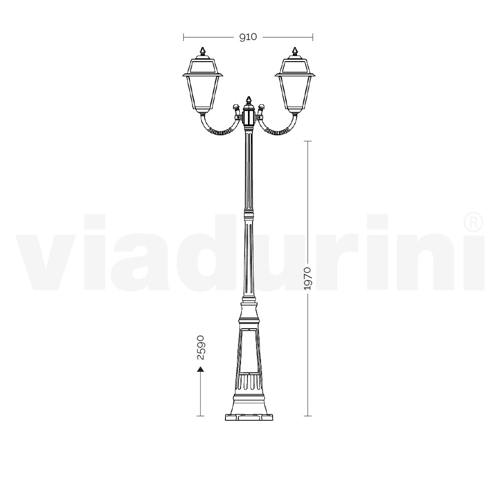 مصباح حديقة مصنوع من هيكل من الألومنيوم المصبوب وموزع زجاجي مصقول بالرملمصنوع بالكامل في إيطاليا . مزود ببراغي من الفولاذ المقاوم للصدأ. تُضفي البساطة والبساطة على هذه القطعة جمالاً خاصاً، مع تنوع ملحوظ في الاستخدامات ، مما يجعلها مثالية لإضاءة وتأثيث المساحات الخارجية، مثل الحدائق والشرفات والشوارع والممرات، حيث تُكمل البيئة بلمسة من الرقي.