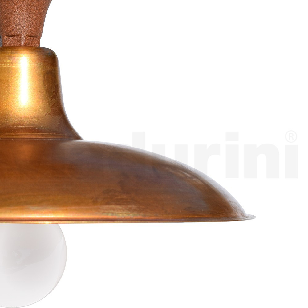 مصباح سقف خارجي بهيكل من الألومنيوم المصبوب وموزع من النحاس الطبيعي (قطر 260 مم)صُنع بالكامل في إيطاليا . مُجهّز ببراغي من الفولاذ المقاوم للصدأ وحشية سيليكون لمزيد من الحماية. فكرة أثاث تجمع بين العملية والأناقة بفضل جمالها الذي يتميز بلمسات راقية وديكورات ذات طابع عتيق تُبرز تفردها، مما يجعلها مثالية لتأثيث أي مساحة خارجية بعناية. مثالية لبيئات مثل الحدائق والباحات والشوارع والممرات، وكذلك للمساحات الصغيرة مثل الحانات والمطاعم.