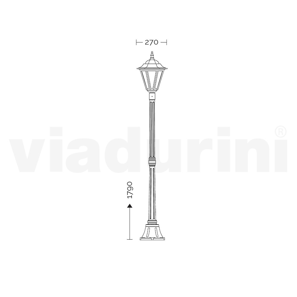 عمود إنارة على الطراز القديم مصنوع من الألومنيوم مع ناشر زجاجي صنع في إيطاليا.
