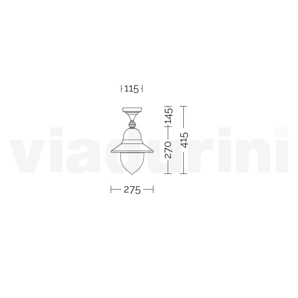 مصباح سقف خارجي عتيق مصنوع من الألومنيوم والبولي كربونات صنع في إيطاليا.
