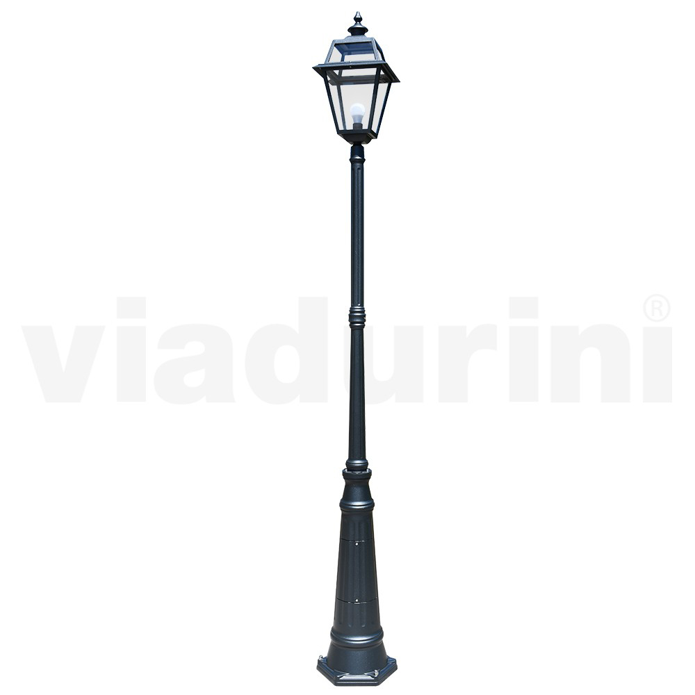 مصباح حديقة على الطراز القديم مصنوع من الألومنيوم والزجاج صنع في إيطاليا.