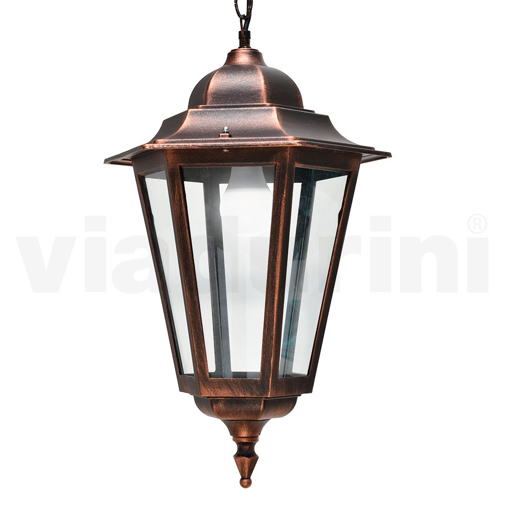 مصباح معلق خارجي بهيكل من الألومنيوم المصبوب وموزع زجاجي، مصنوع بالكامل في إيطاليا . مزود ببراغي من الفولاذ المقاوم للصدأ. تصميم أنيق وجذاب، يتميز بخطوط وزخارف عتيقة ، وطابع تقليدي قوي، قادر على إضفاء لمسة مميزة على أي بيئة. مثالي لإضاءة المساحات الخارجية، مثل الشوارع والحدائق والممرات، وكذلك الأماكن الخارجية المخصصة للتجمعات مثل الحانات والمطاعم.
