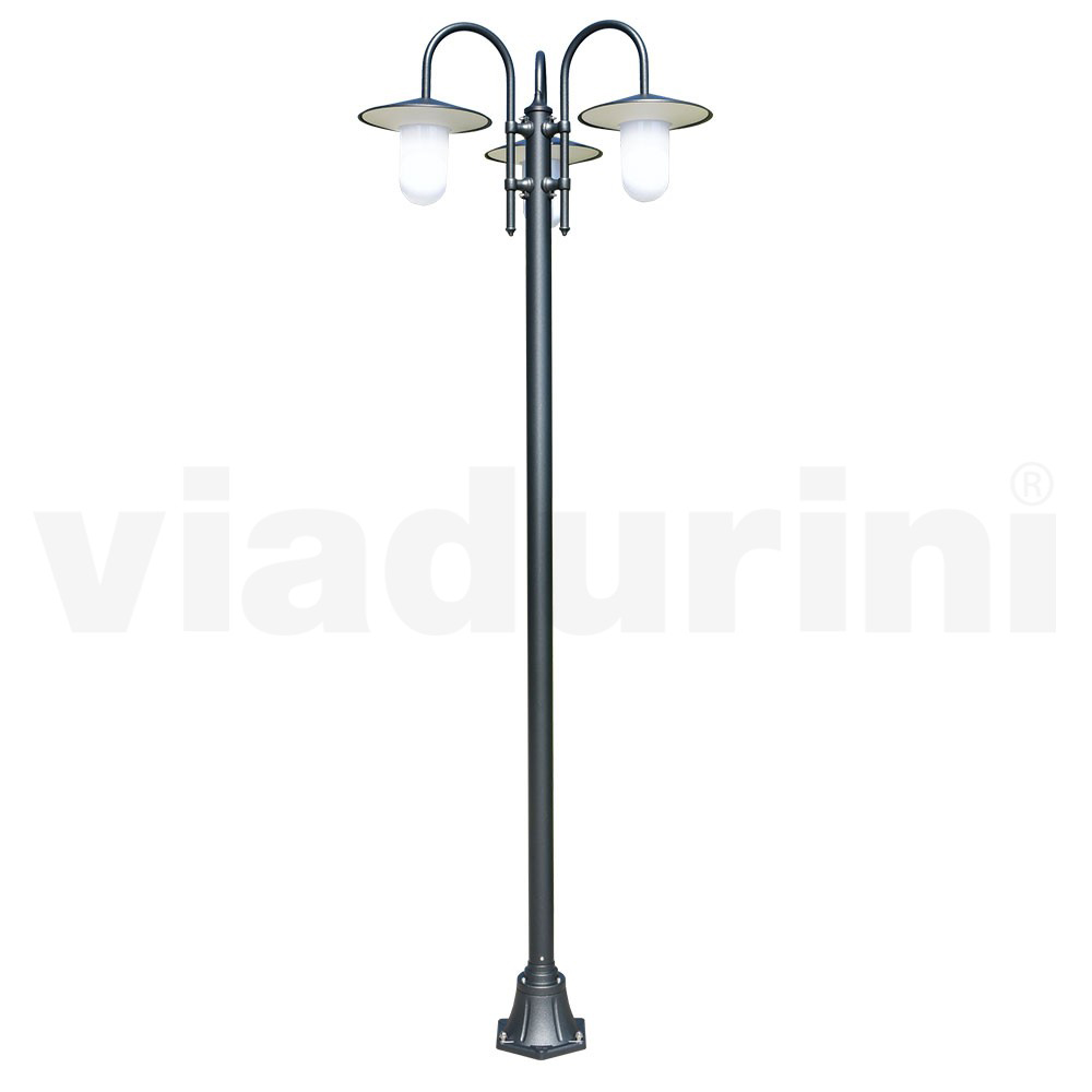 مصباح شارع عتيق بثلاثة مصابيح من الألومنيوم والبولي كربونات صنع في إيطاليا.