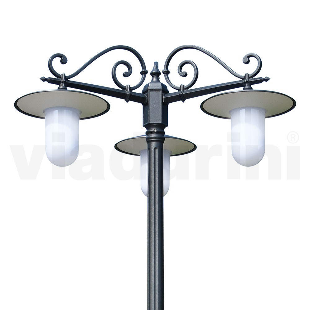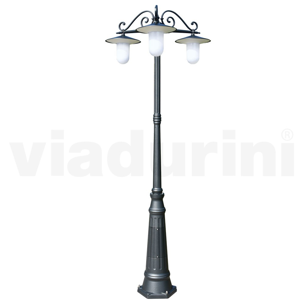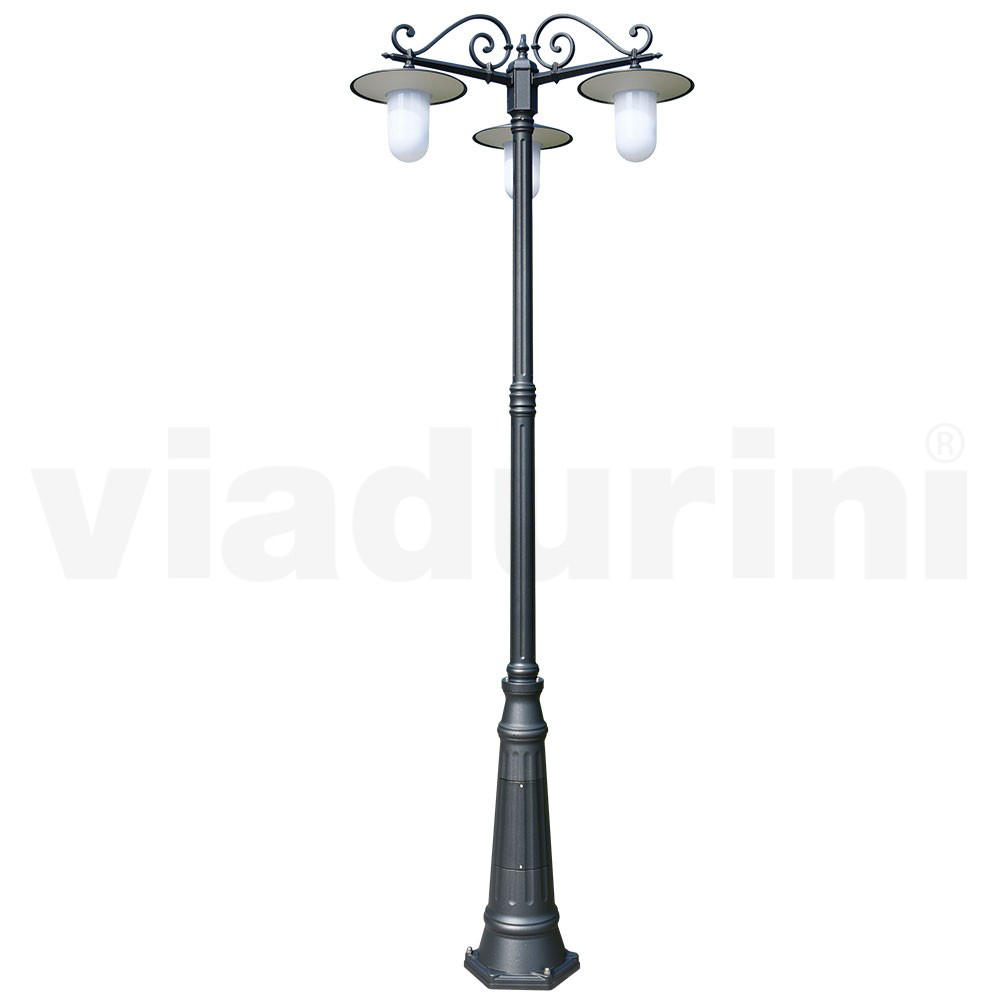 مصباح شارع عتيق مكون من 3 مصابيح بهيكل من الألومنيوم الرمادي صنع في إيطاليا.