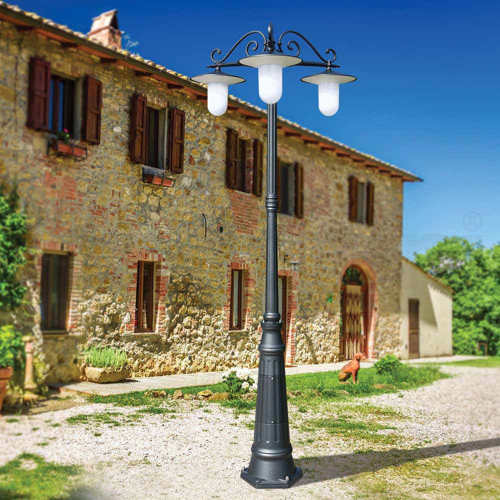 مصباح خارجي بثلاثة مصابيح ، مصنوع في إيطاليا من الألومنيوم المصبوب، بلمسة نهائية رمادية أنثراسايت، وموزع من البولي كربونات . مزود ببراغي من الفولاذ المقاوم للصدأ. تصميم أنيق بلمسة عتيقة، قادر على تزيين المساحات الخارجية كالحدائق والشرفات والشوارع والممرات بدقة وفعالية. مثالي لمن يبحثون عن أثاث راقي وفريد وراقي .