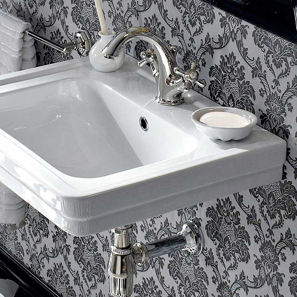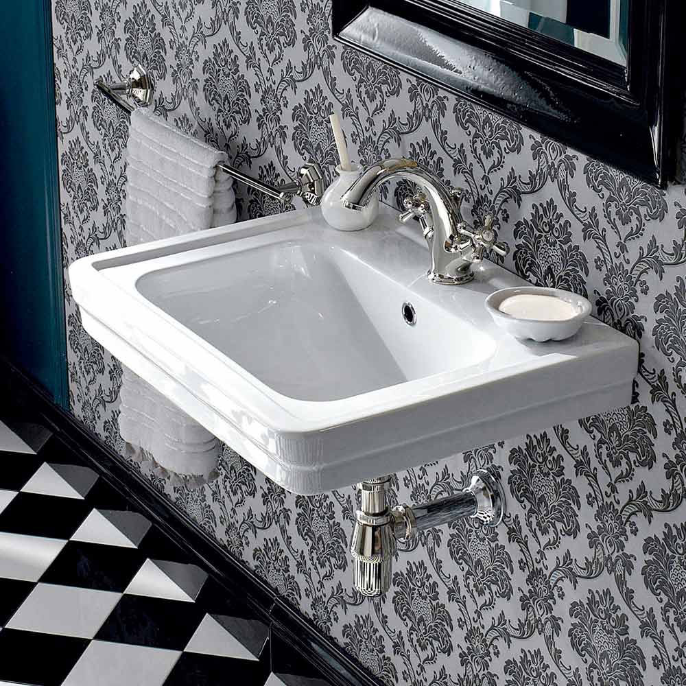 حوض غسيل معلق على الحائط من السيراميك الأبيض على الطراز الكلاسيكي مصنوع في إيطاليا، مروة.