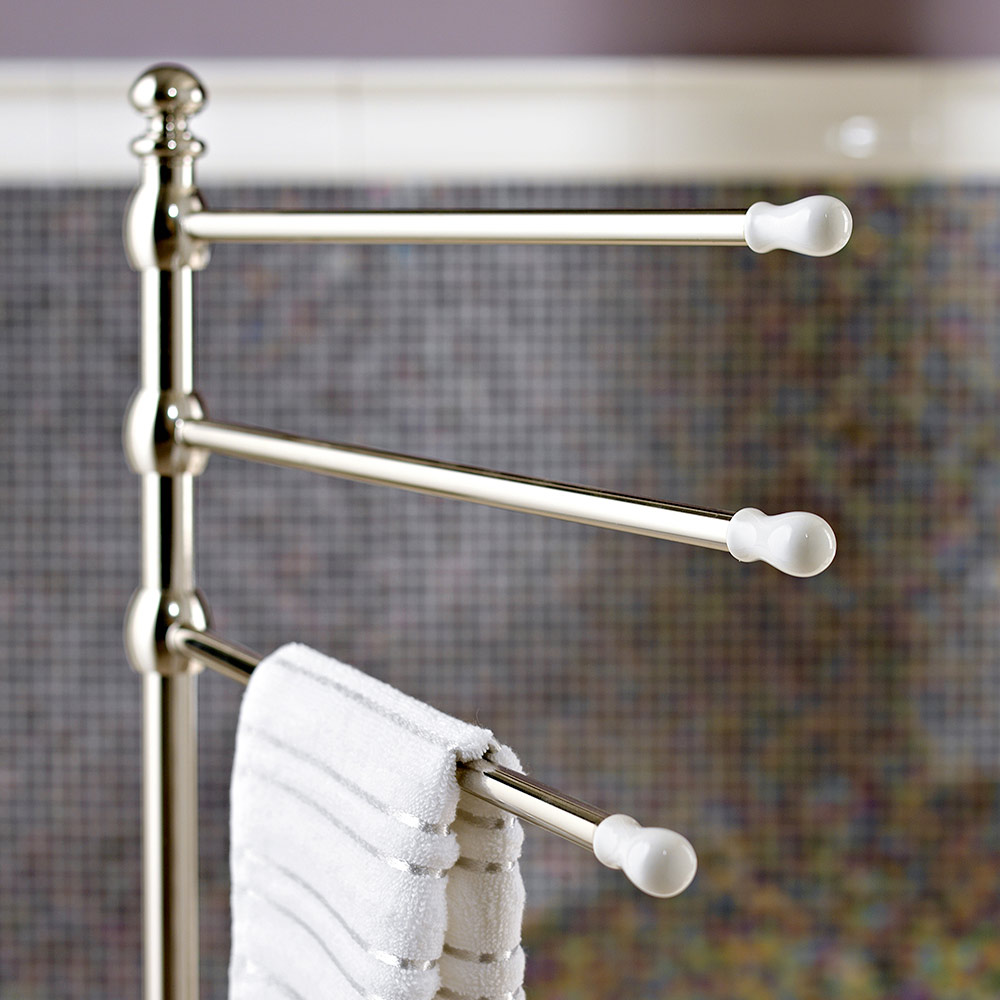 حامل المناشف قطعة أثاث لا غنى عنها لحمامٍ أنيق وفاخر وعملي . فهو يُتيح لك تخزين المناشف بشكل منظم، وفي الوقت نفسه يُشكّل عنصرًا ديكوريًا يُضفي لمسةً جماليةً على ديكور حمامك.