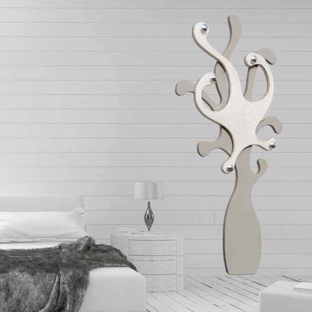 علاقة معاطف حائط كوري، تصميم عصري، صنع في إيطاليا شماعة معاطف حديثة، صنع في إيطاليا. شماعة معاطف عمودية. صُنع في إيطاليا. بخمسة مقابض مطلية بالكروم. MDF مطلي باللون البني الفاتح مع زخارف منقوشة من عرق اللؤلؤ وخمسة مقابض مطلية بالكروم.