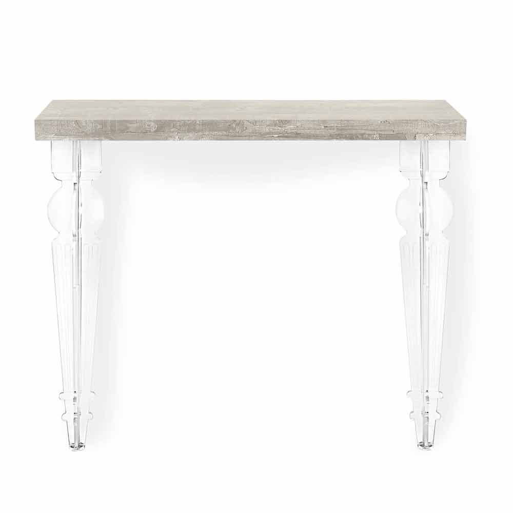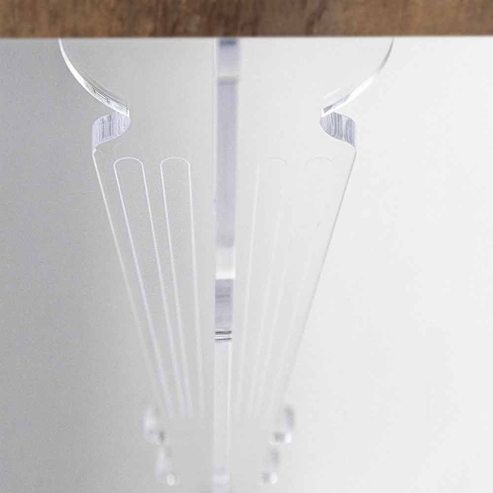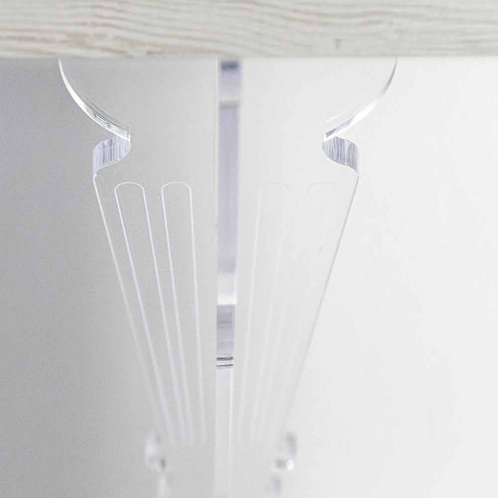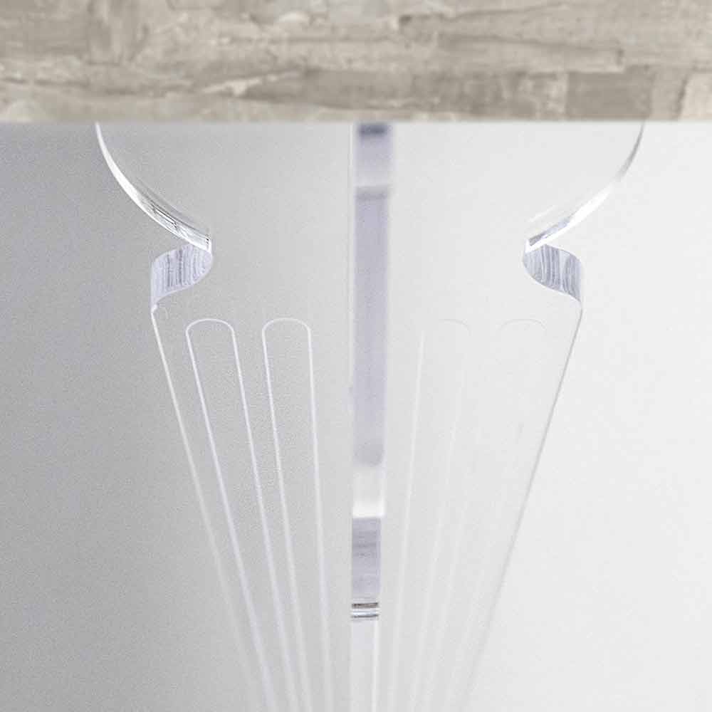 الأرجل المحولة من زجاج شبكي PMMA نقي من بوليمر الكريستال الأكريليكي البكر مع الجزء العلوي من جوهر خشب الميلامين، مع لمسة نهائية مصقولة غير لامعة طبيعية، تخلق تأثيرًا من الخفةوالانسجام التام. تظل السطوع واللمعان المميزين للأرجل ثابتين وغير متغيرين بمرور الوقت، في حين يضمن الجزء العلوي المصنوع من الميلامين المتانة وعدم قابلية التشوه. إنه منتج ذو تصميم حصري تم تصوره وتصميمه وتصنيعه في إيطاليا بمواد إيطالية.