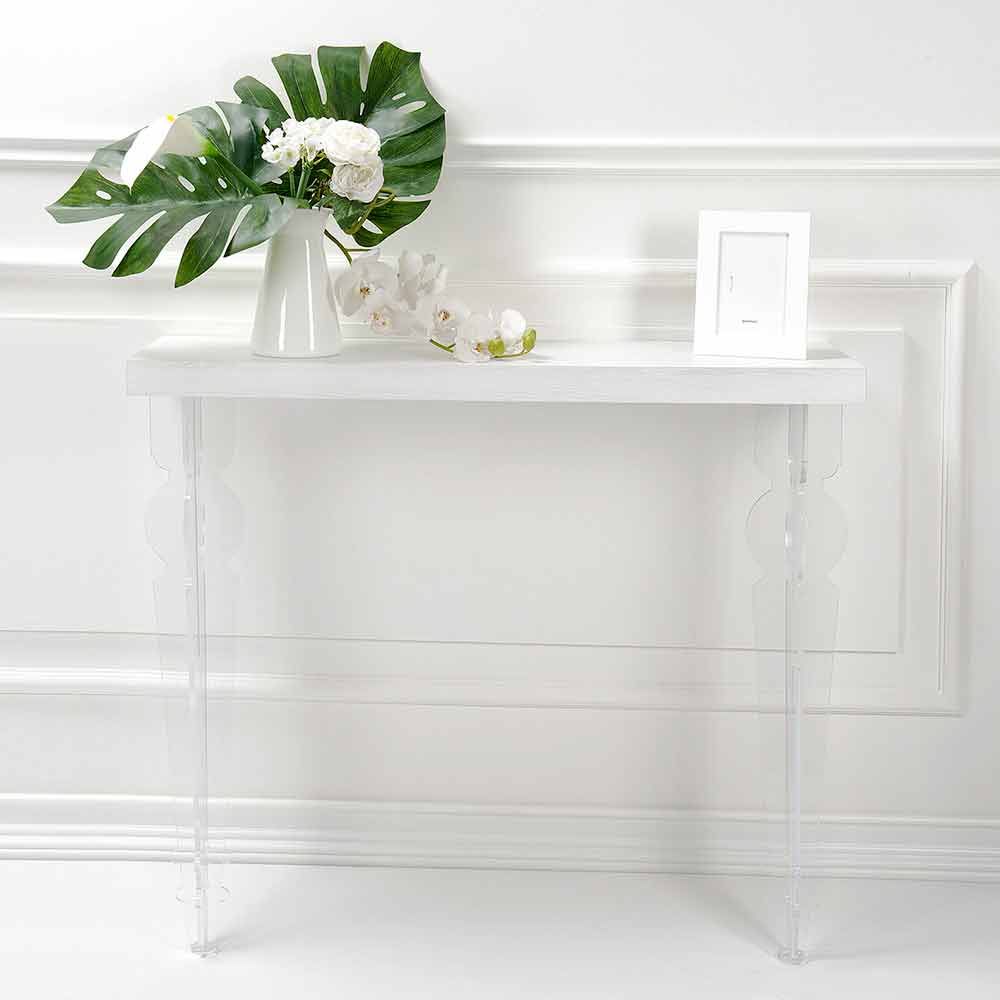 الكونسول هو قطعة أثاث ذات أناقة كبيرة، توضع عند مدخل المنزل وترحب بالبيئة وتزينها. على وجه الخصوص، تمثل وحدة التحكم الجدارية هذه الاندماج المثالي بين الكريستال الأكريليكي وجوهر الخشب الدافئ.