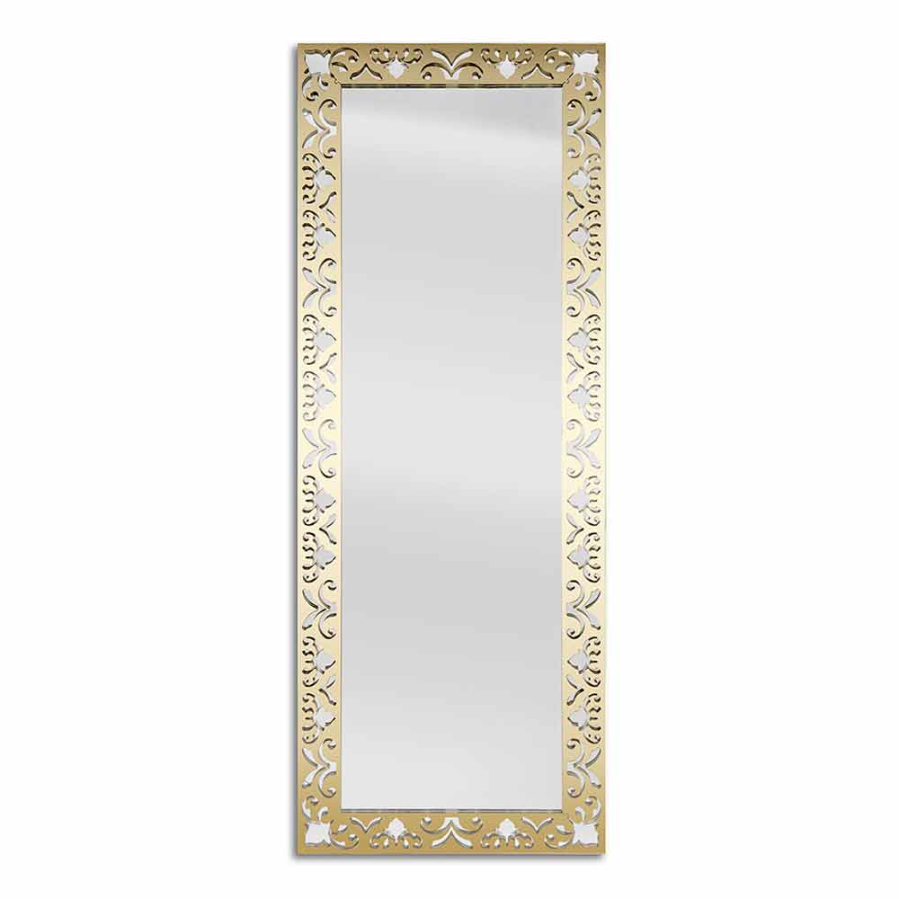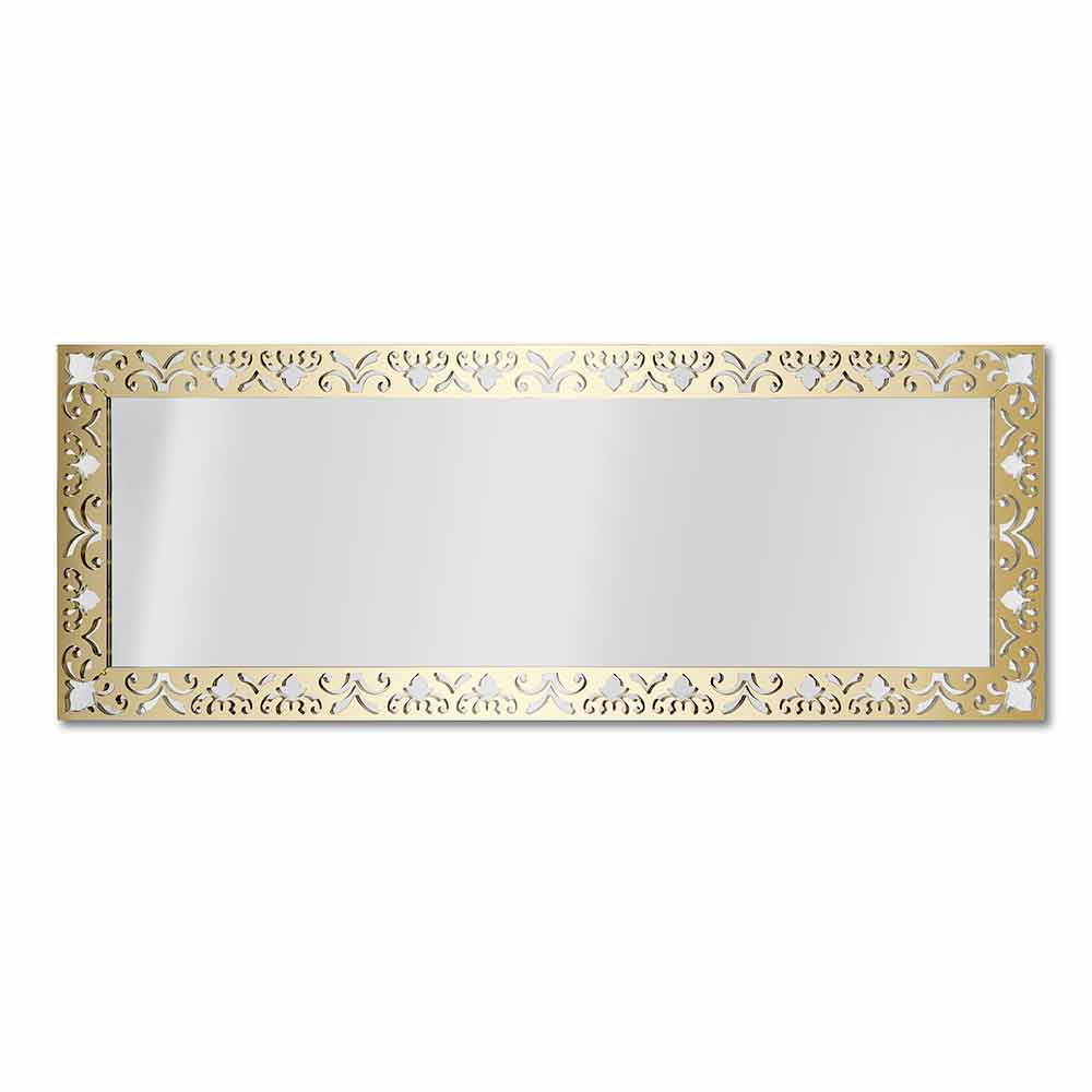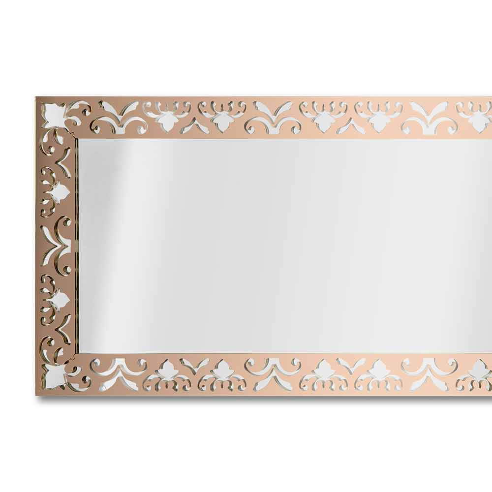 مرآة حائط مستطيلة بتصميم عصري بإطار من الزجاج الشفاف الذهبي أو الفضي أو البرونزي مصنوعة في إيطاليا.