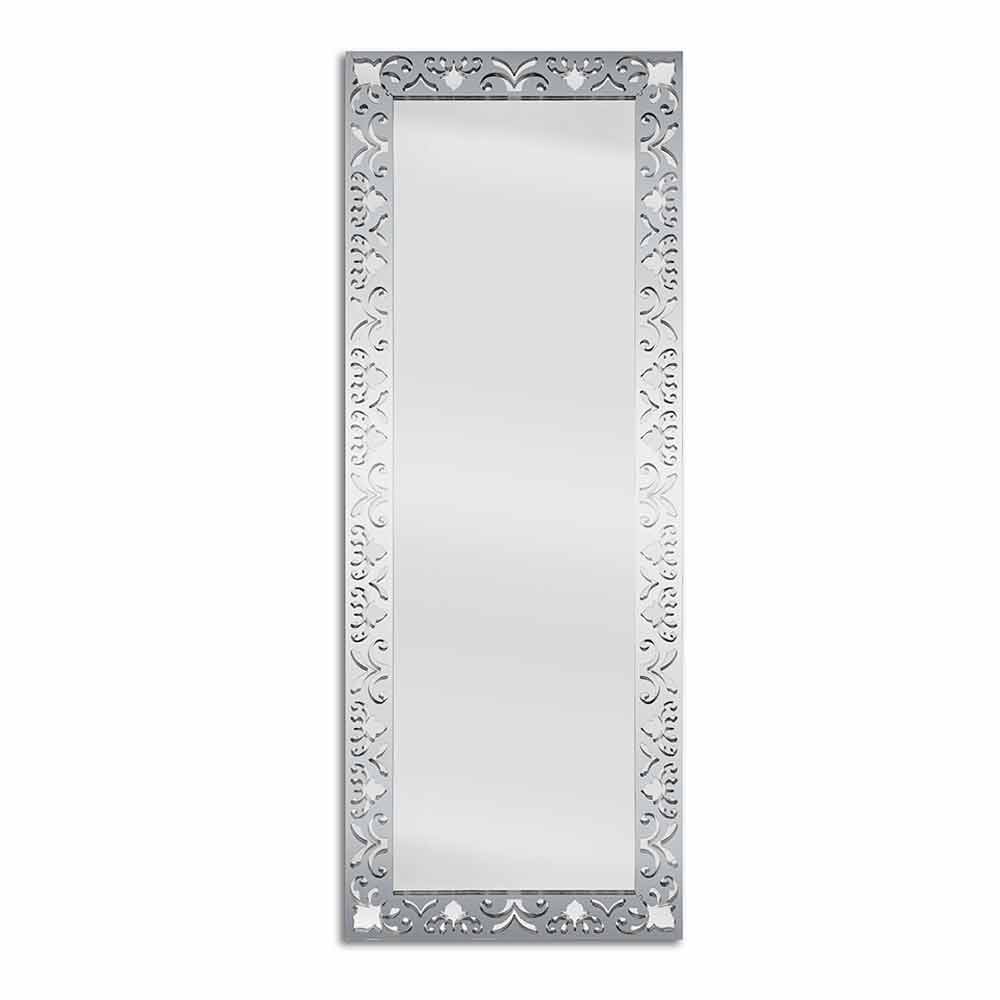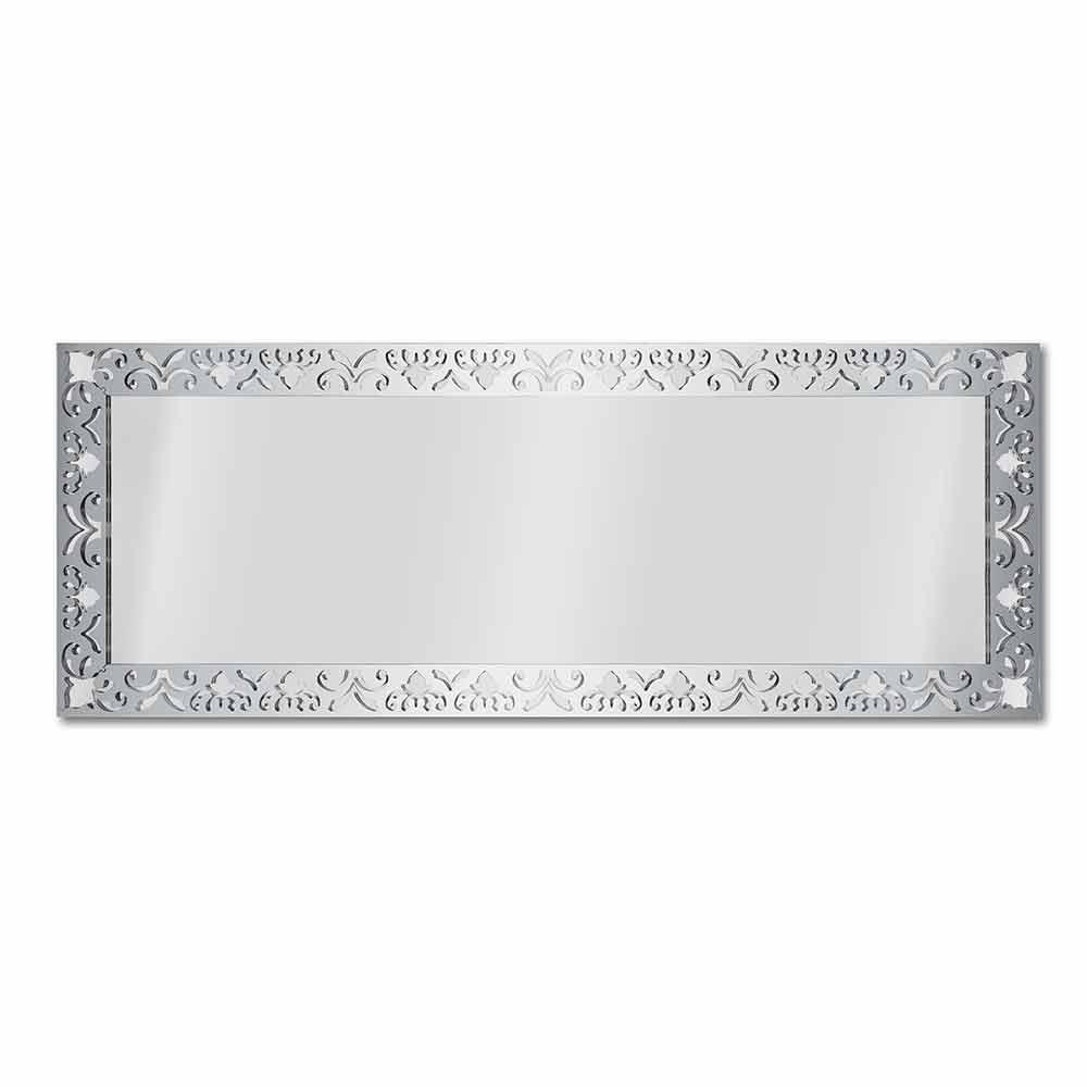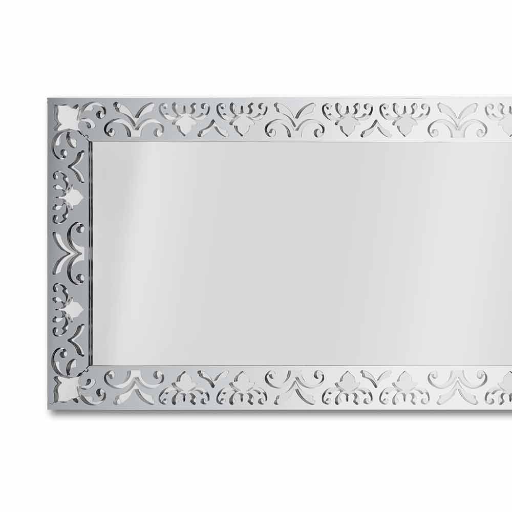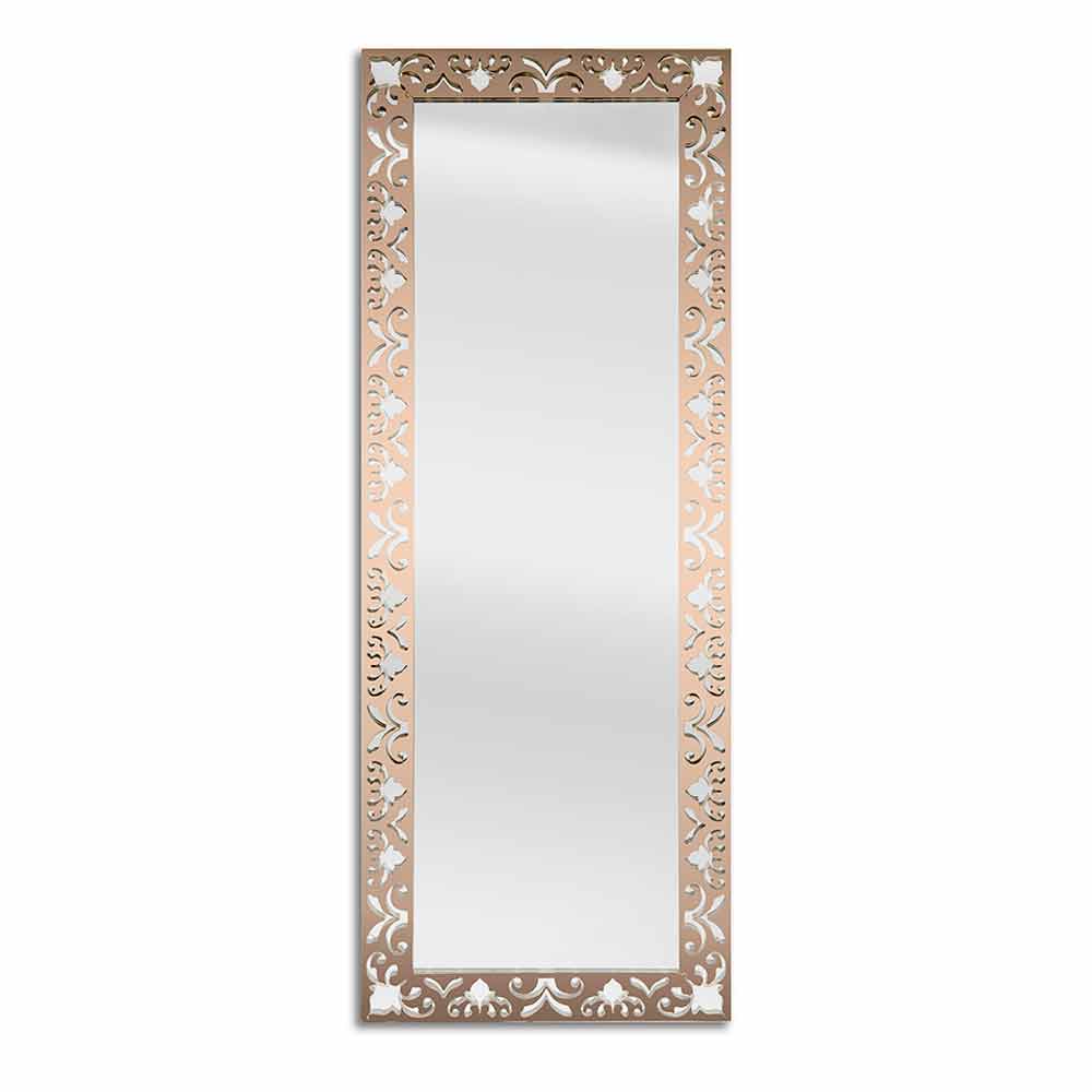 مرآة حائط مستطيلة بتصميم عصري بإطار من الزجاج الشفاف الذهبي أو الفضي أو البرونزي مصنوعة في إيطاليا.