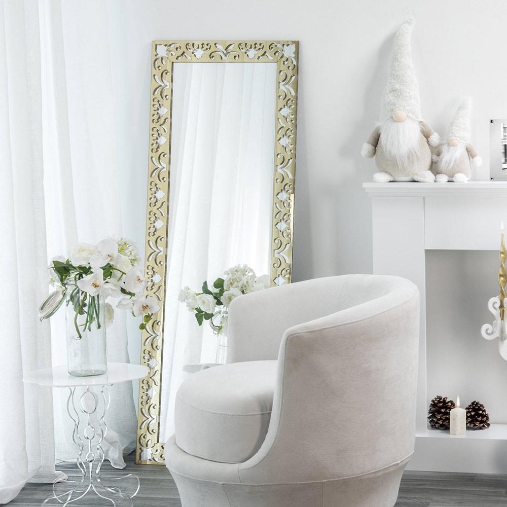 تتميز مرآة الحائط الأنيقة هذه بإطار مصنوع من زجاج شبكي بوليمري عذراء بنسبة 100% بزخارف مستوحاة من الأزهار مقطوعة بالليزر بمهارة، للحصول على تصميم ثمين وخفي.