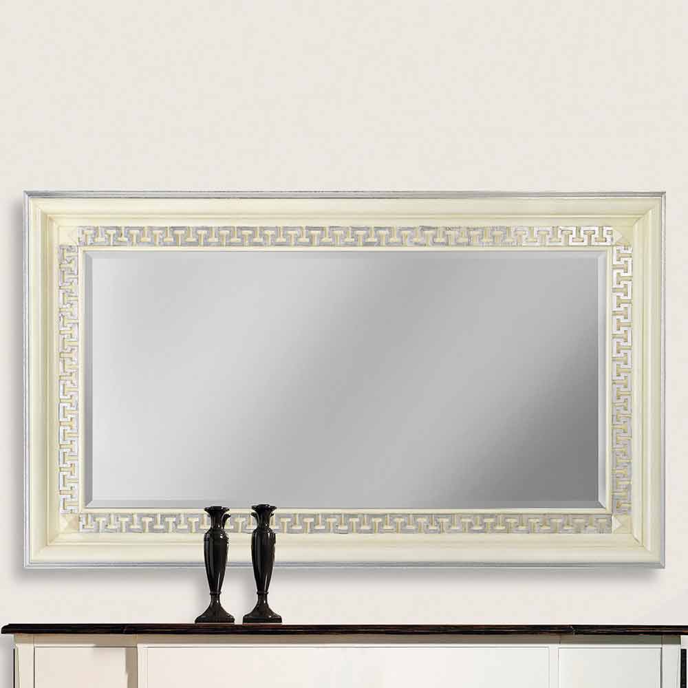 هذه المرآة مثالٌ أنيقٌ يُجسّد جماليةً معاصرةً بلمساتٍ كلاسيكية . يتميز تصميمها بإطارٍ رفيعٍ وأنيقٍ يحمل نقشَ المفتاح اليوناني، وهو تصميمٌ كلاسيكيٌّ خالدٌ يرمزُ إلى اللانهاية والخلود، مُطعّمٌ بدقة.