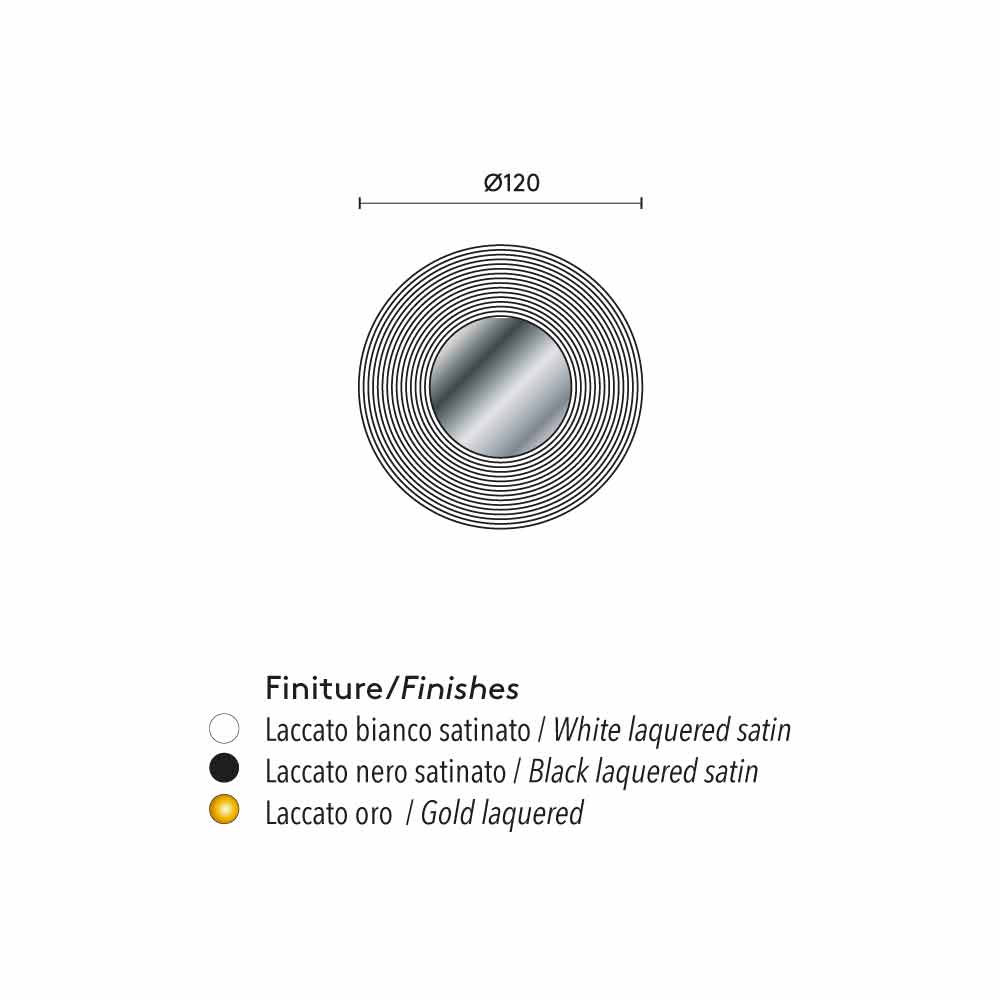 مرآة مصممة مع دعامة من MDF مطلية بالورنيش ومتوفرة باللون الأبيض الساتان أو الأسود الساتان أو الذهبي.