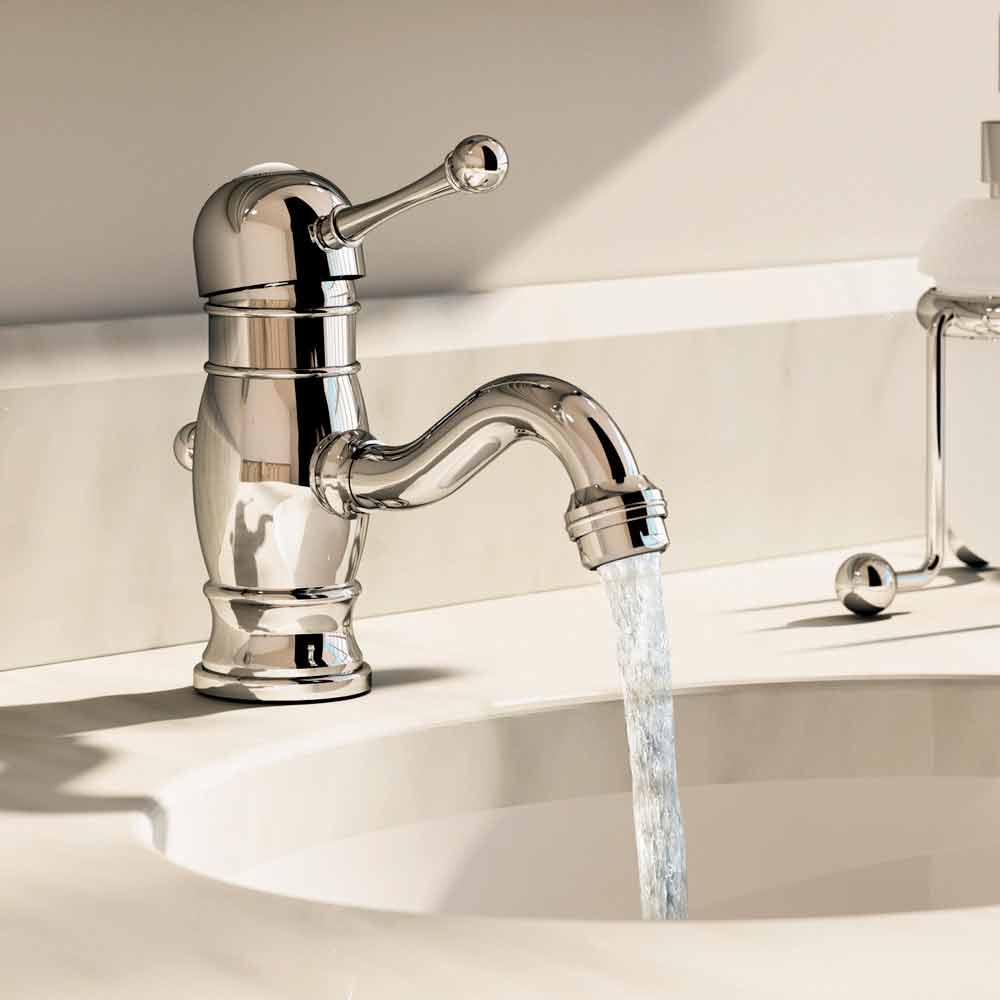 خلاط حوض مطبخ بتصميم كلاسيكي من النحاس المطلي بالكروم ؛ ارتفاع 150 مم وقاعدة عجلات 130 مم، مع آلية تصريف ورفع. صُنع بالكامل في إيطاليا بمواد عالية الجودة مطابقة للمعايير الأوروبية. يُمكن تركيب هذا الخلاط في الأعلى، وهو مُجهز بمُهَوِّئ وخرطوشة قرص سيراميكي؛ يُوصى به لنظام توفير الطاقة الذي يُوفر 6 لترات/دقيقة من المياه، ولملحقاته الصلبة.