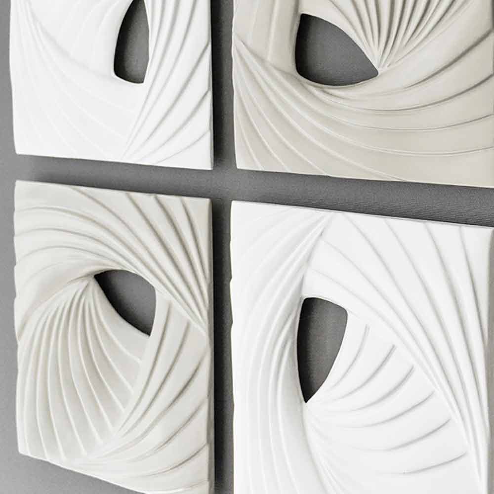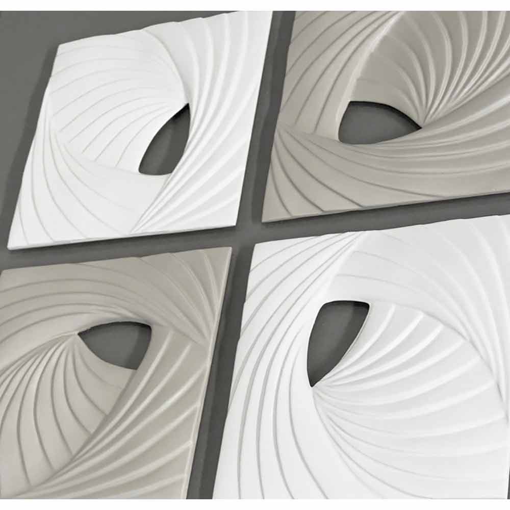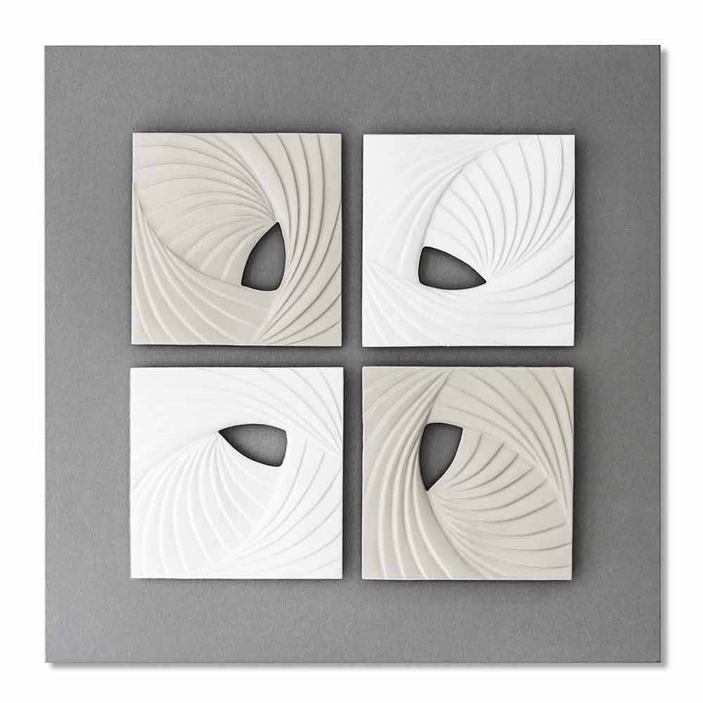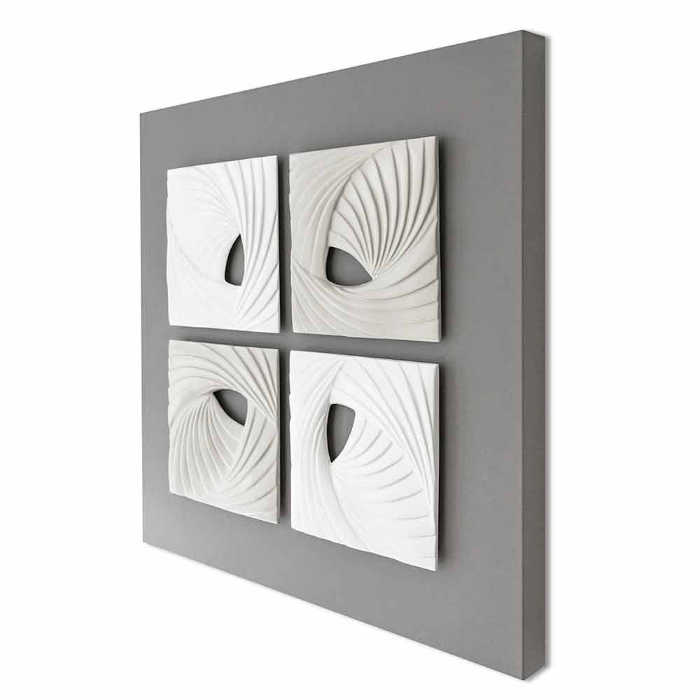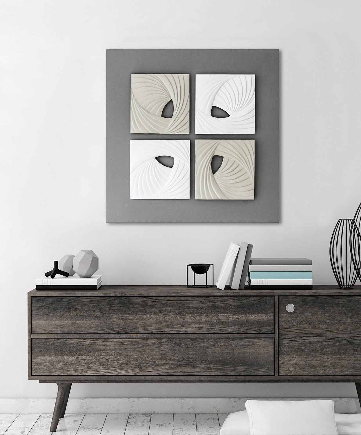 تصميم عصري لديكور الحائط بنقش بارز من السيراميك الأبيض والرمادي يتدلى على قماش، صنع في إيطاليا.