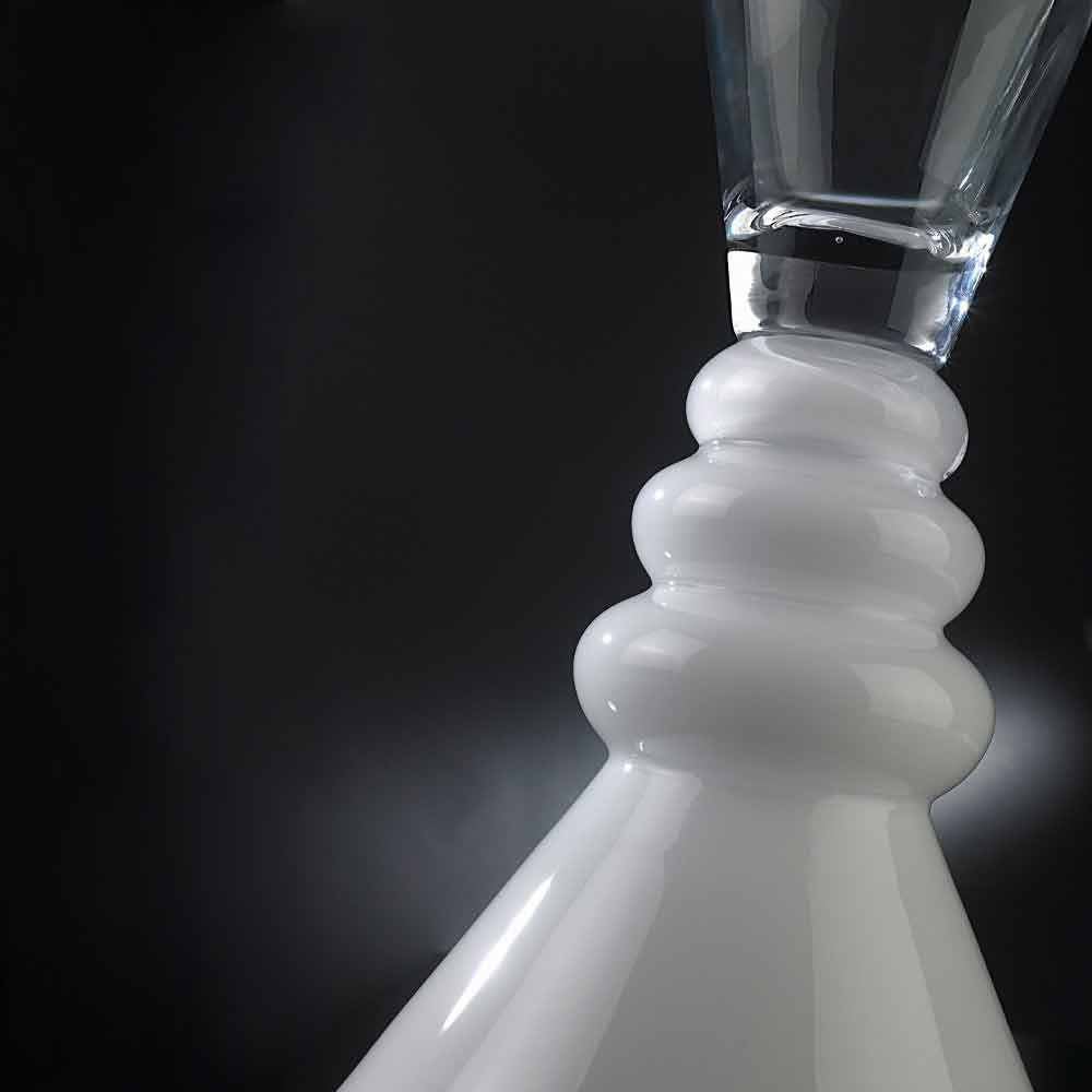 مزهرية زخرفية من الزجاج الشفاف والأبيض مصنوعة في إيطاليا.